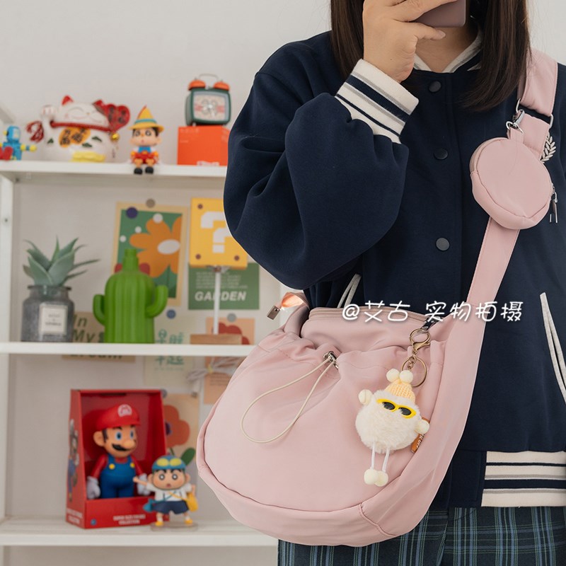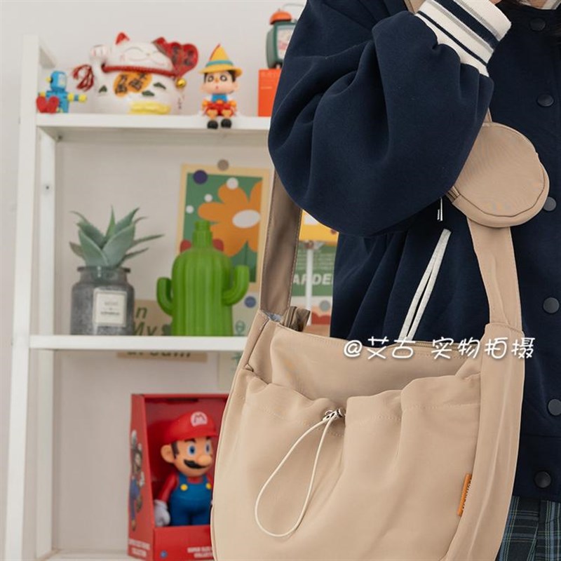 学生简约单肩包纯色上课补习小众斜挎包帆布轻便通勤慵懒风邮差包