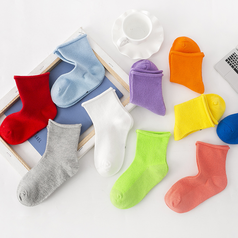 儿童袜子网眼夏季薄款男童女童袜纯棉短袜春秋夏天糖果色松口袜子