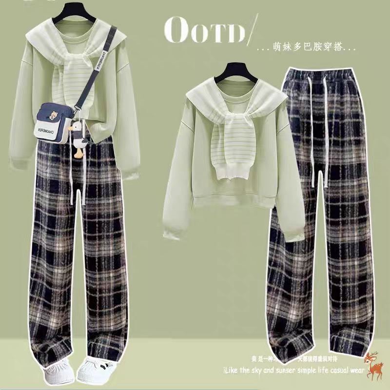 初中生甜美卫衣套装女阔腿裤秋季少女大童休闲毛呢裤两件套韩版潮