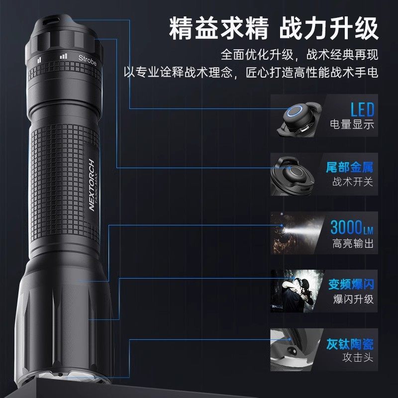 纳丽德TA30C MAX多功能战术专用手电筒强光远射便携超亮搜救手电
