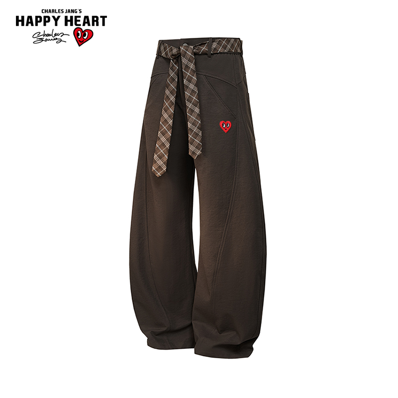 查尔斯桃心美式弯刀休闲裤子男女秋冬季宽松百搭潮流情侣直筒长裤