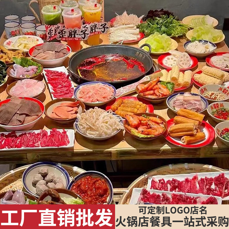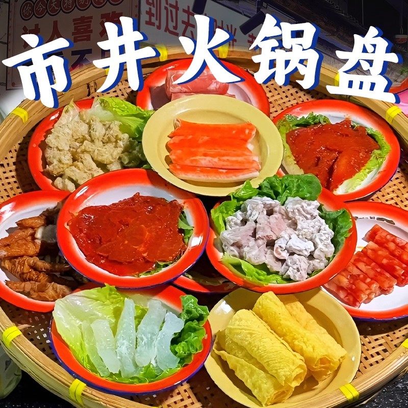 怀旧复古搪瓷369地摊火锅店专用密胺餐具商用市井火锅配菜盘子