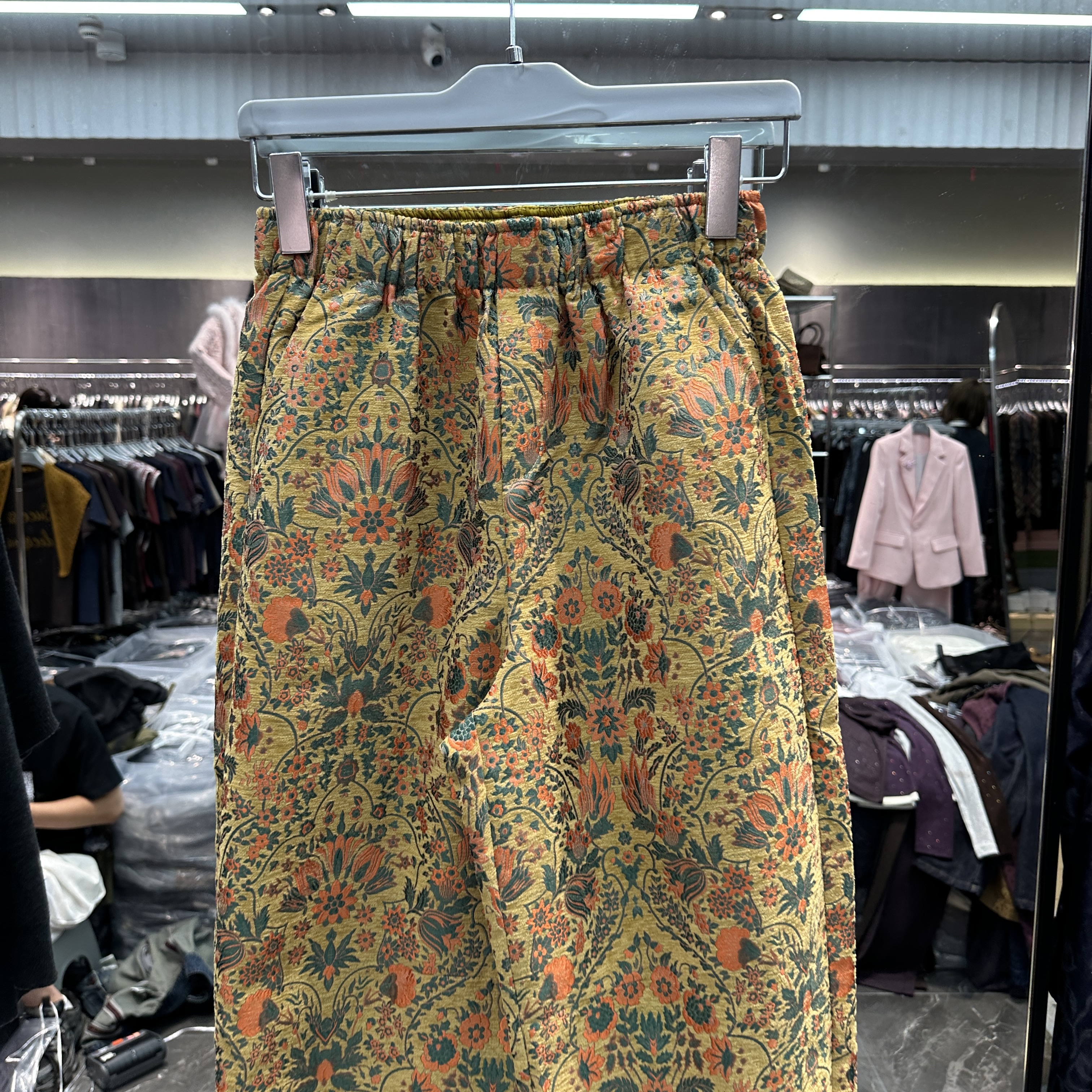 欧洲站2025早秋款复古休闲风松紧腰提花百搭款女士萝卜裤潮26708