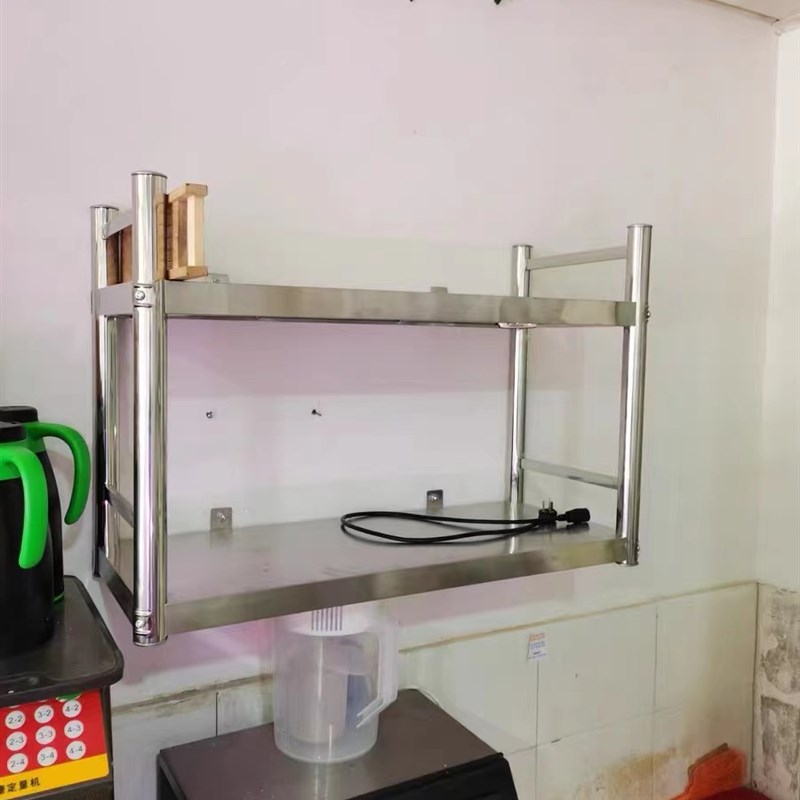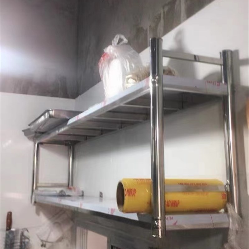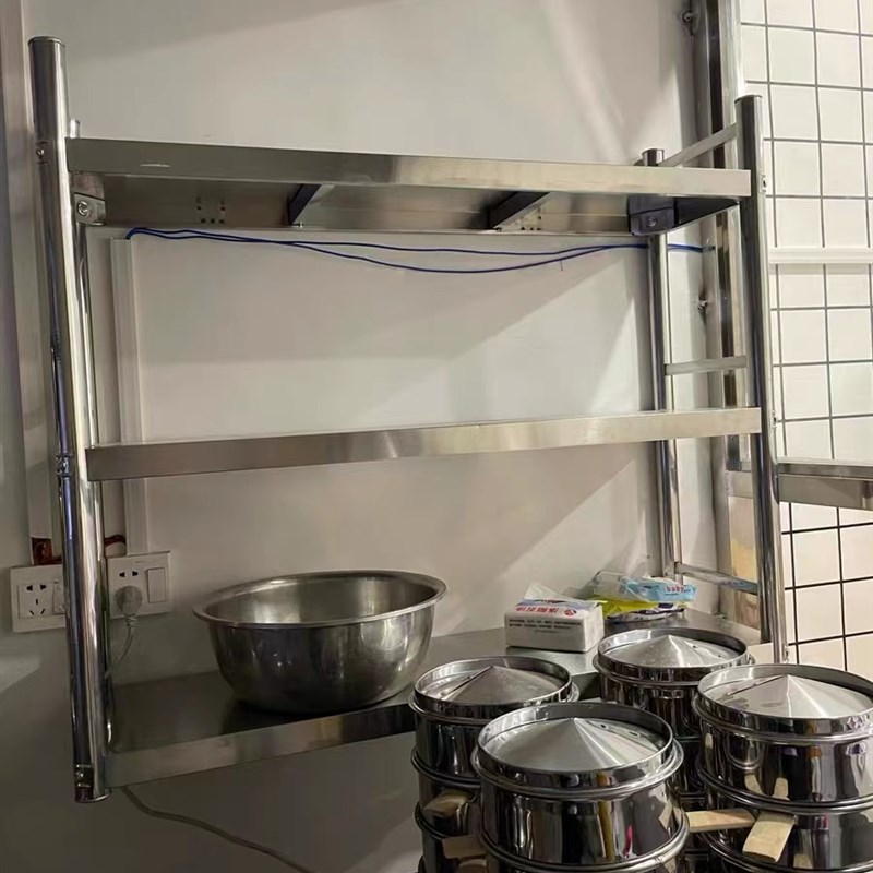 厨房置物架不锈钢壁挂式带围栏2三层挂墙微波炉碗盘收纳墙上吊架