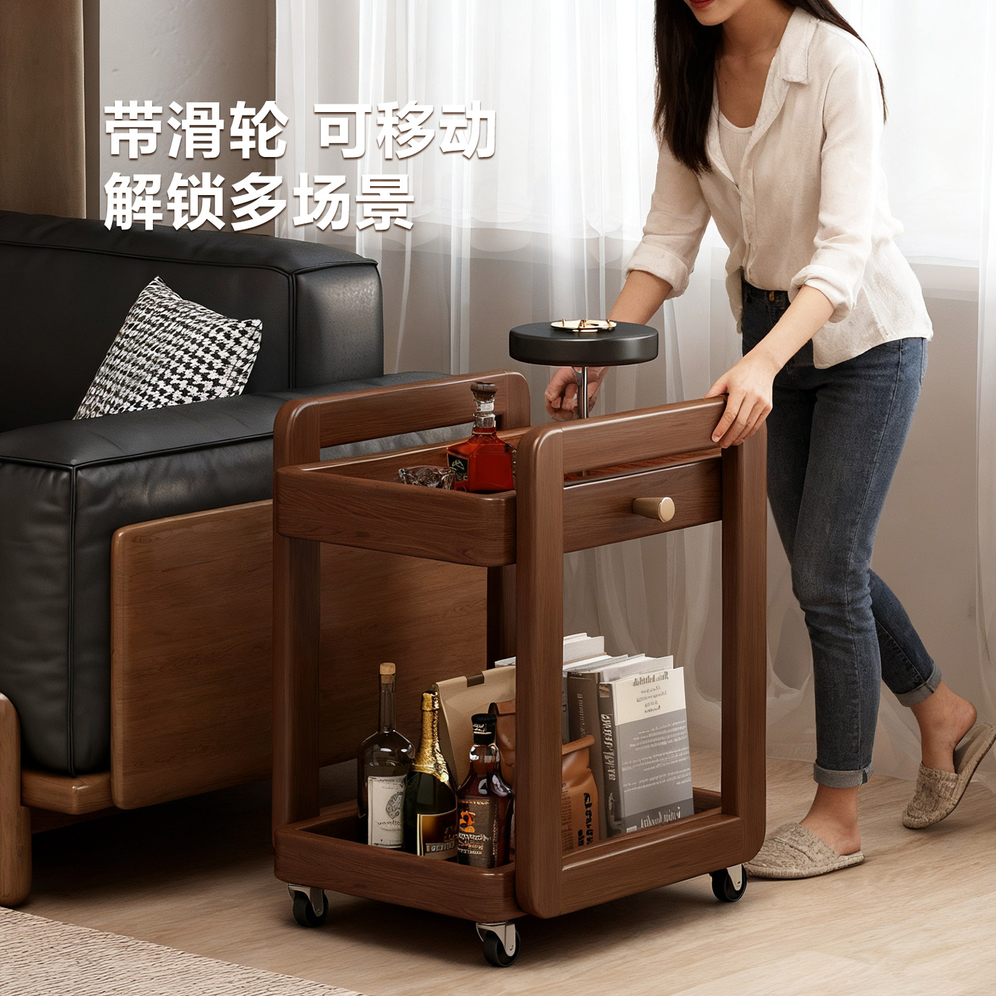沙发边几可移动实木茶几桌客厅零食置物架小推车家用迷你床头边桌