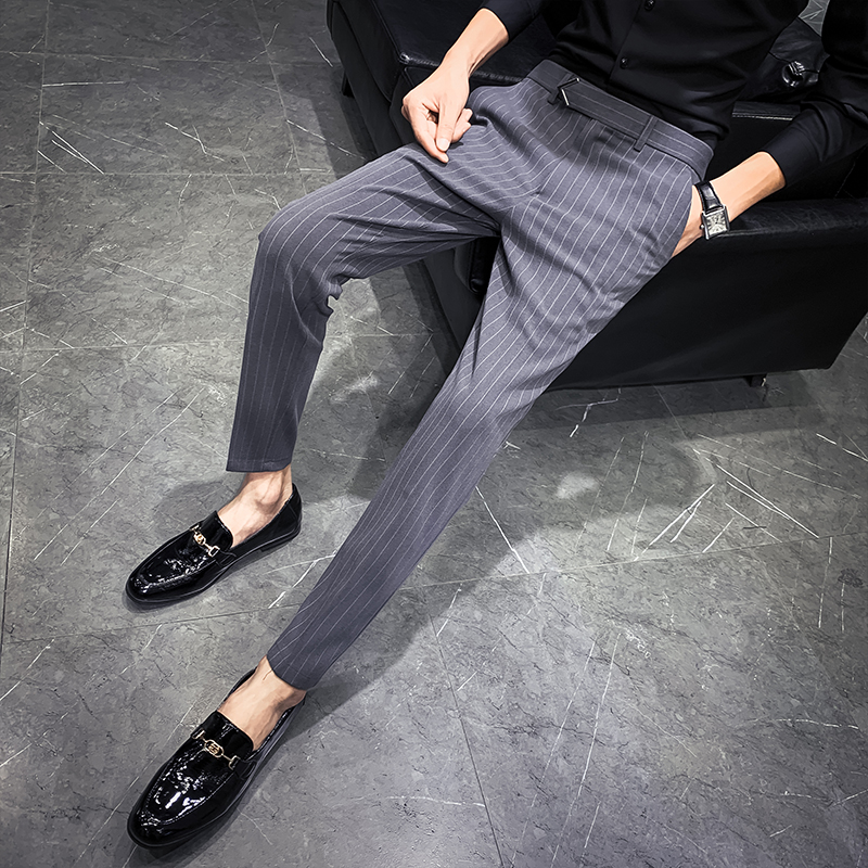条纹西裤男坠感宽松薄款9九分裤韩版潮流ins百搭学生夏季休闲裤男