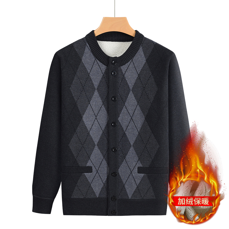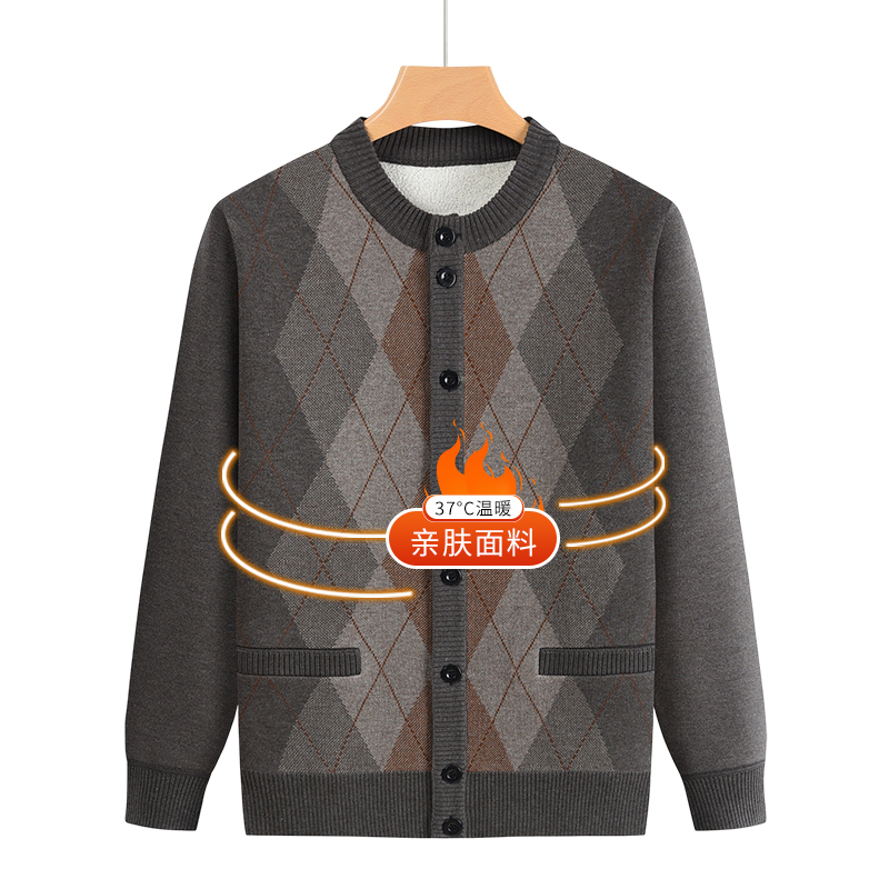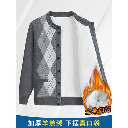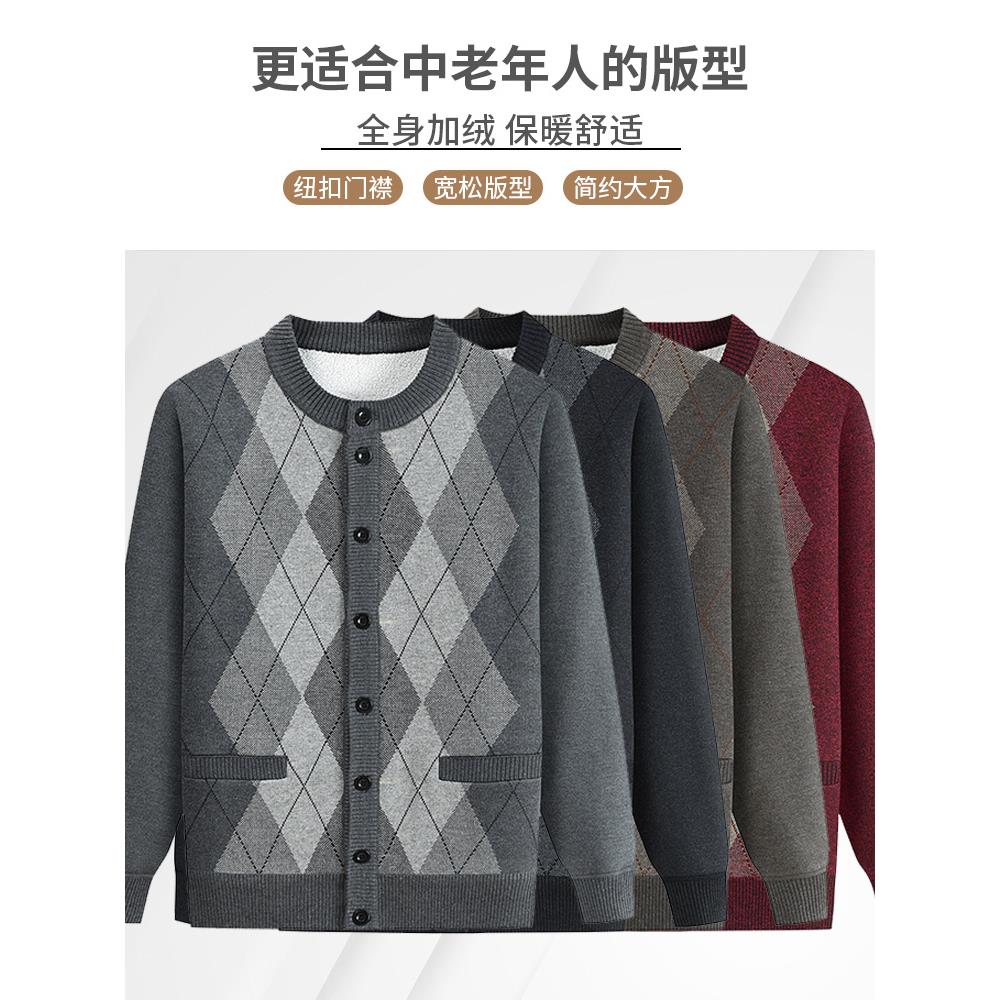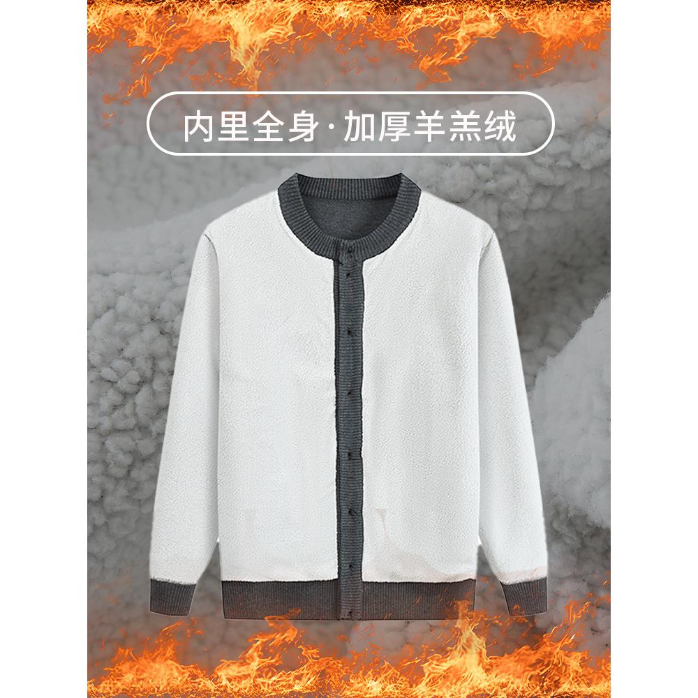冬季中老年男羊羔绒针织开衫毛衣加绒加厚保暖内衣爷爷爸爸装外套