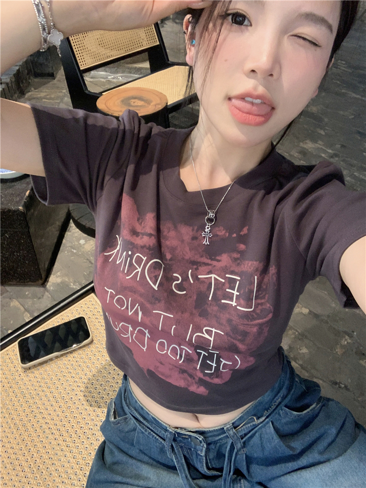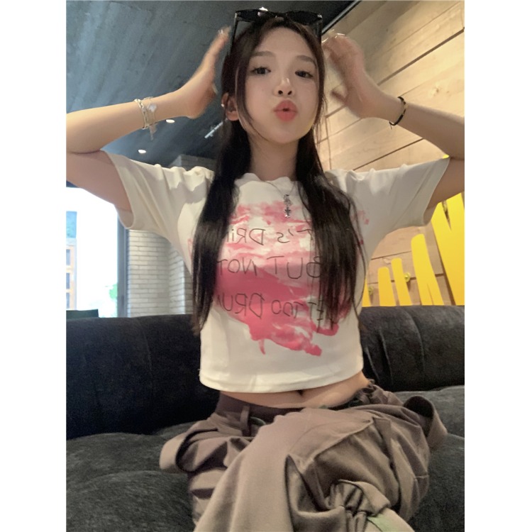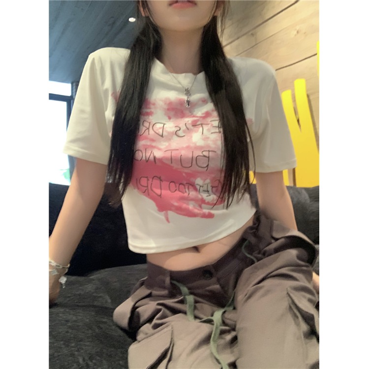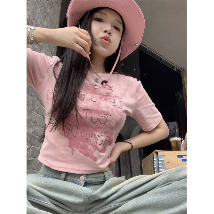 美式正肩纯棉短袖T恤女夏季甜辣妹穿搭修身卡腰短款露脐上衣ins潮