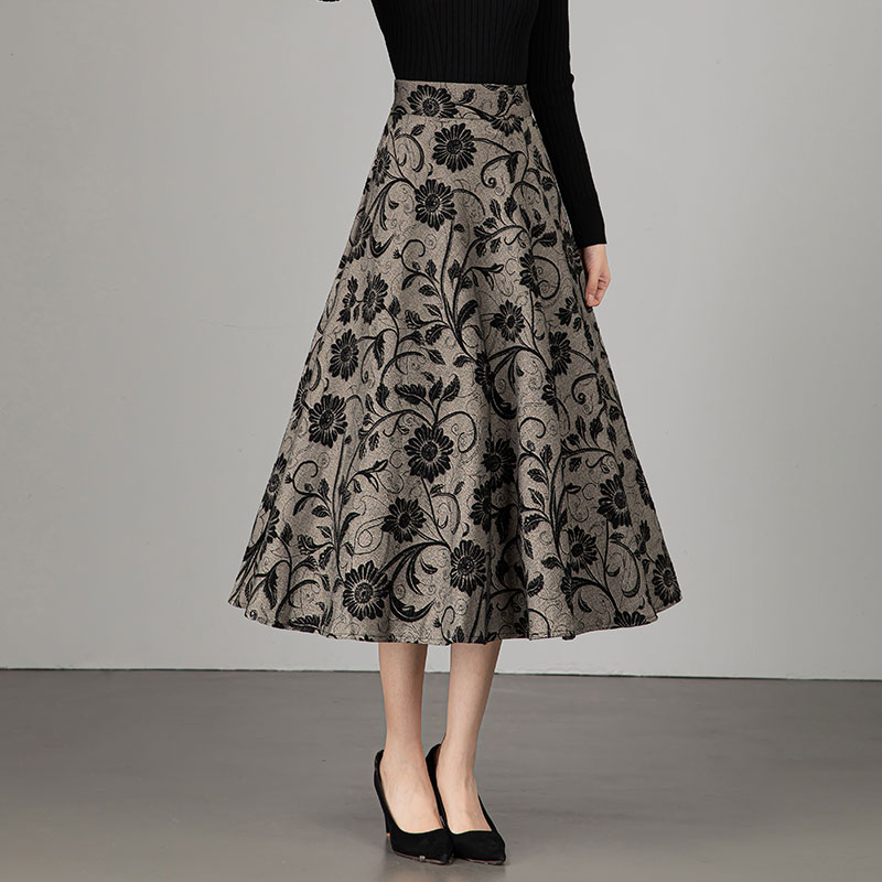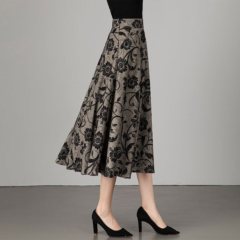 2025新款秋冬复古百搭垂感印花半身裙中长款高腰a字大摆裙半截裙