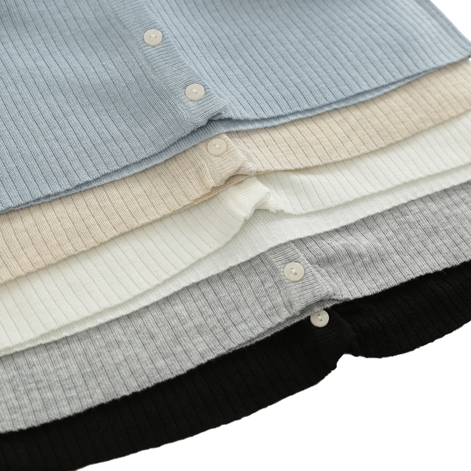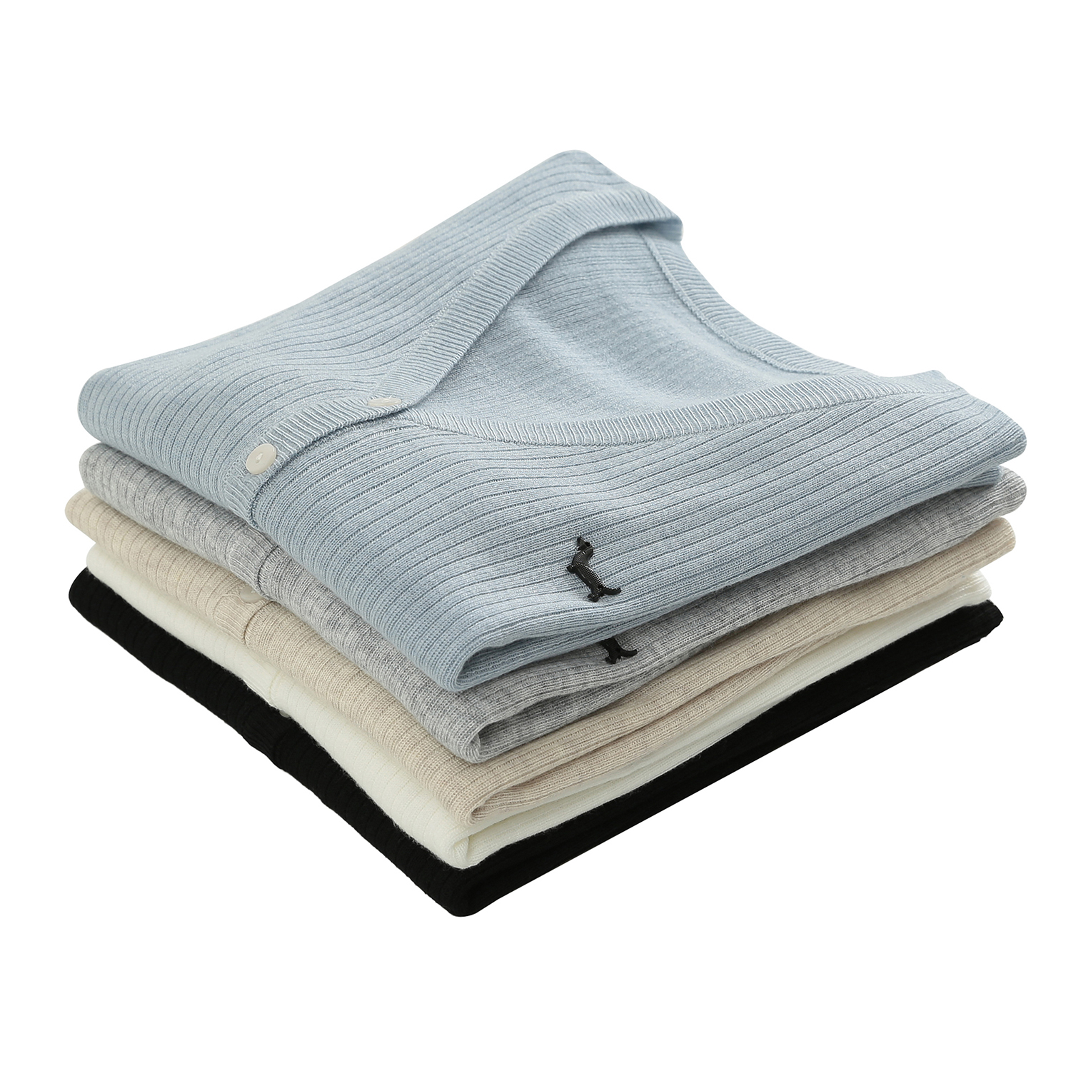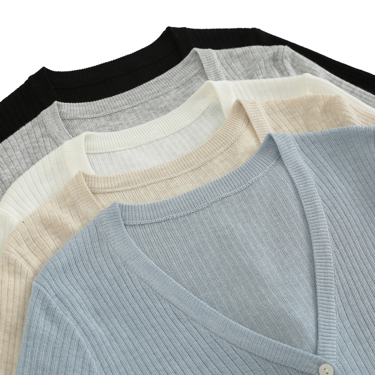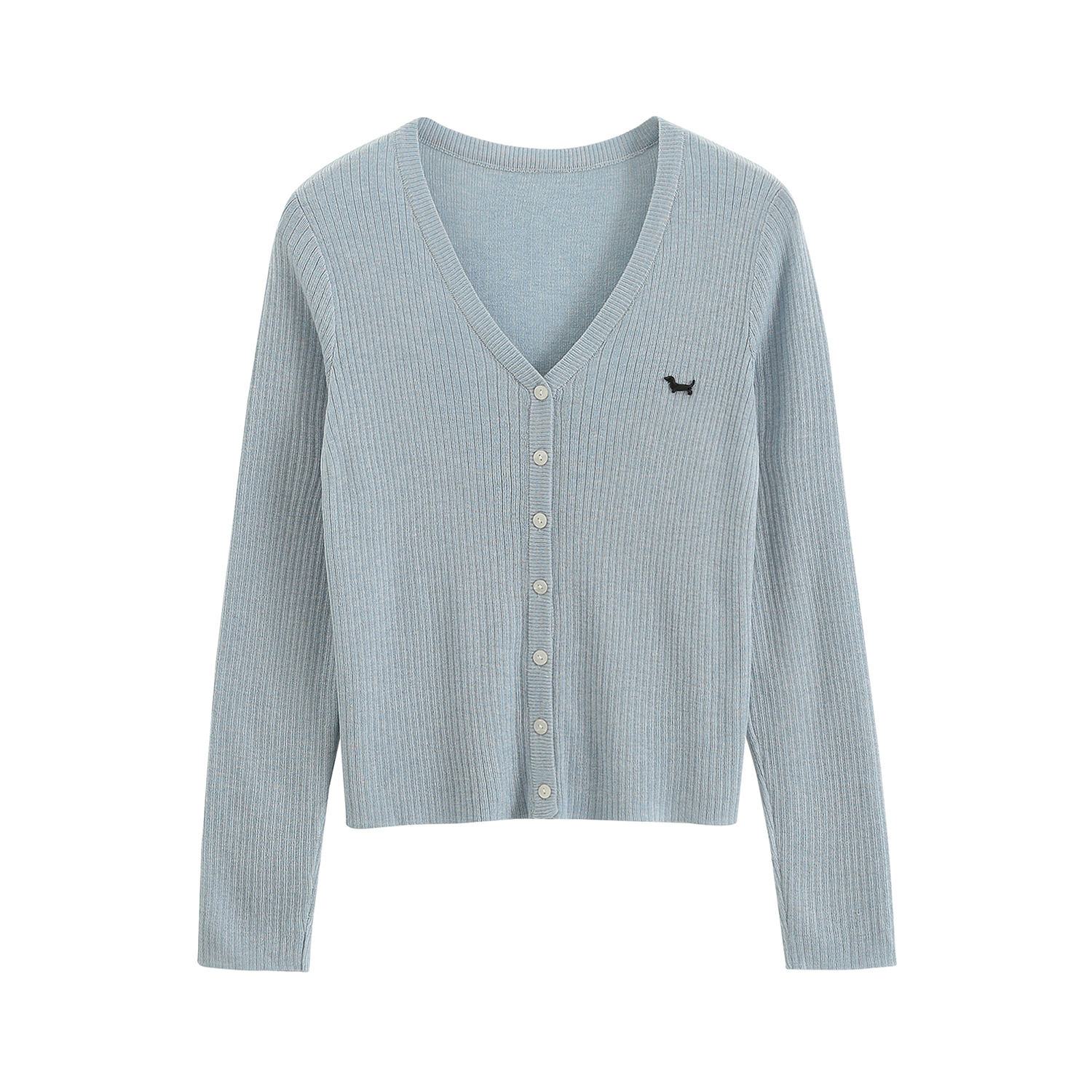 BAOSTUDIO韩系立体小狗标坑条显瘦针织开衫早秋V领短款薄开衫外套