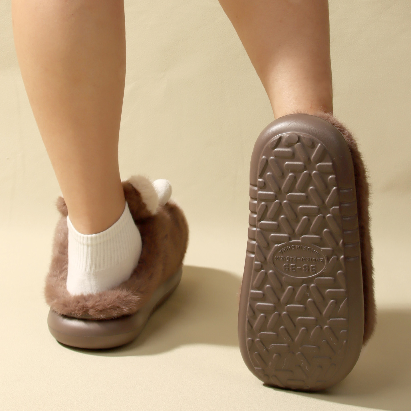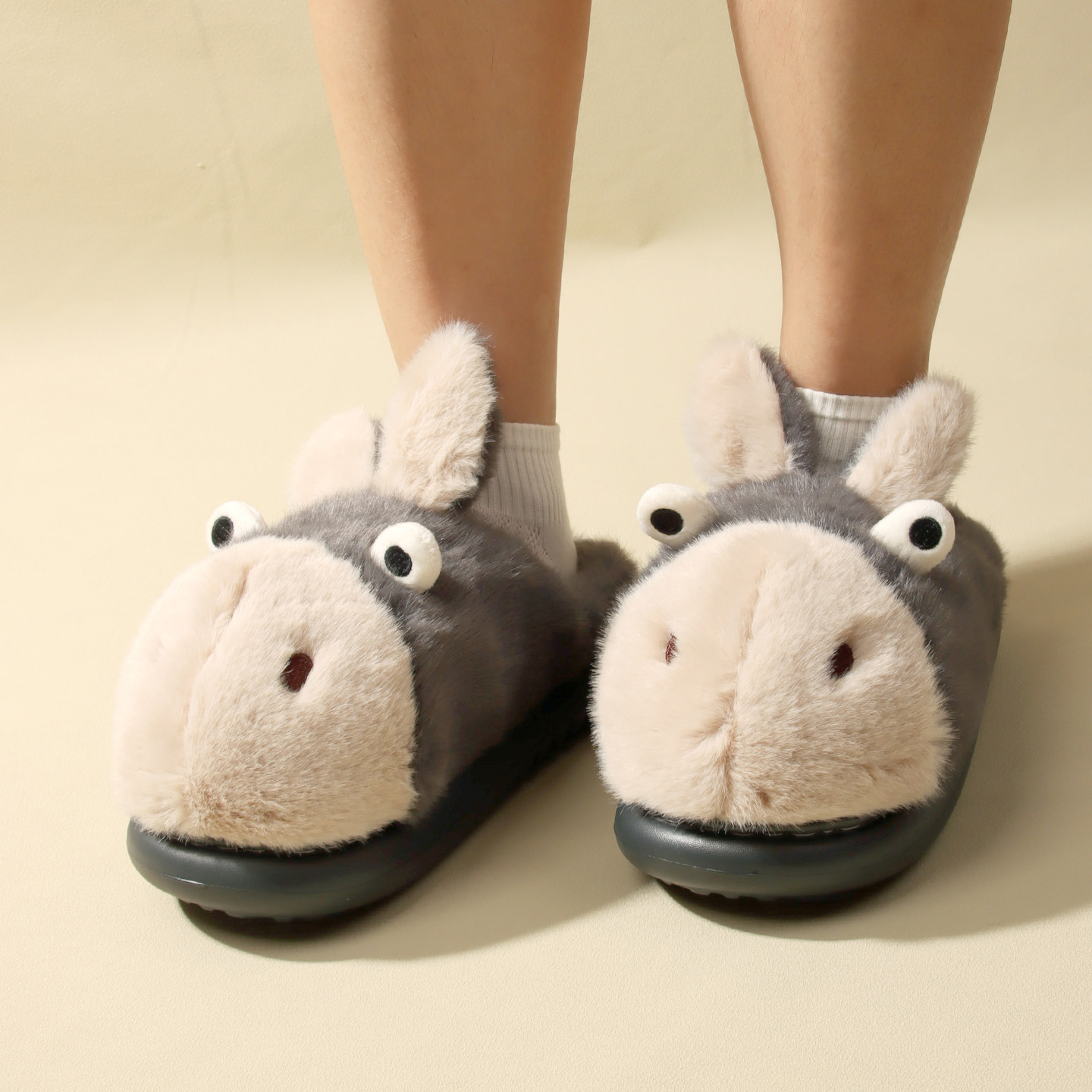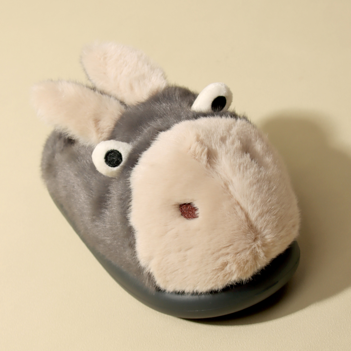 小毛驴棉拖鞋女男款可爱卡通毛绒厚底防滑保暖儿童秋冬新款拖鞋