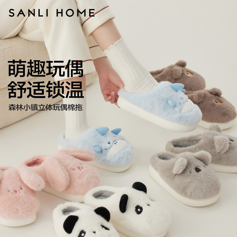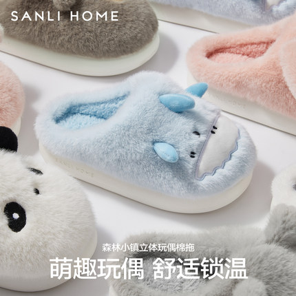 三利可爱舒适锁温棉拖鞋居家室内