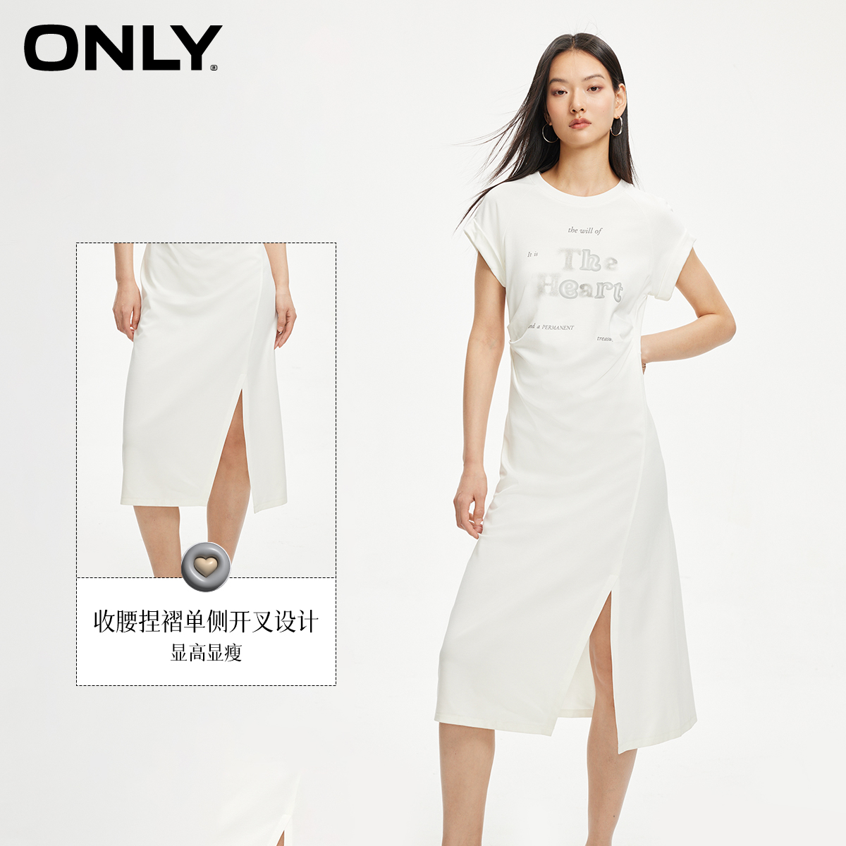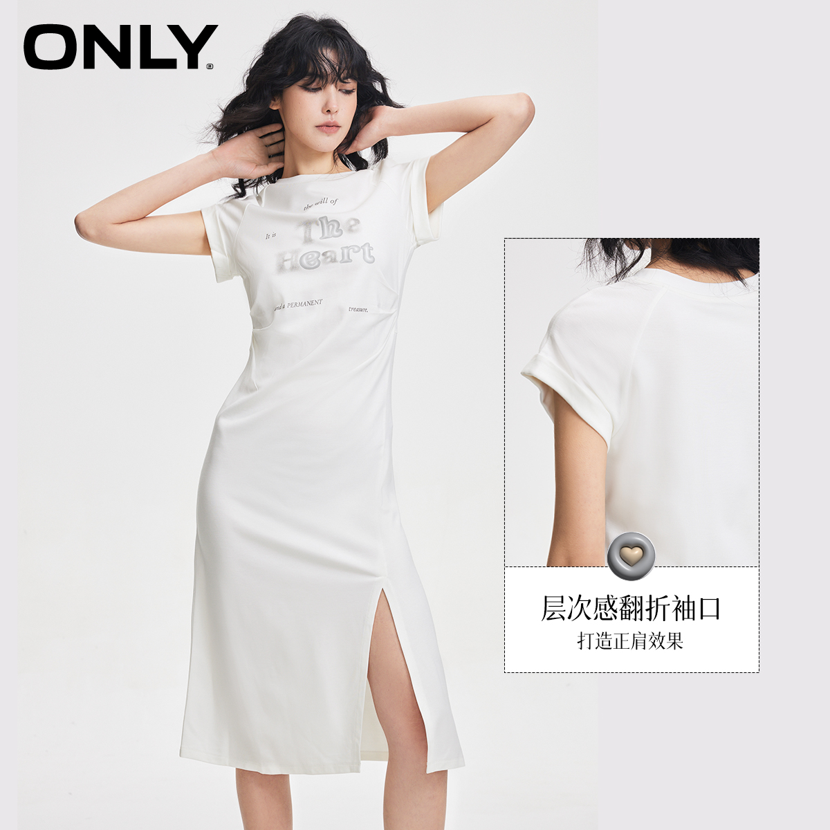 ONLY开叉中长款圆领连衣裙