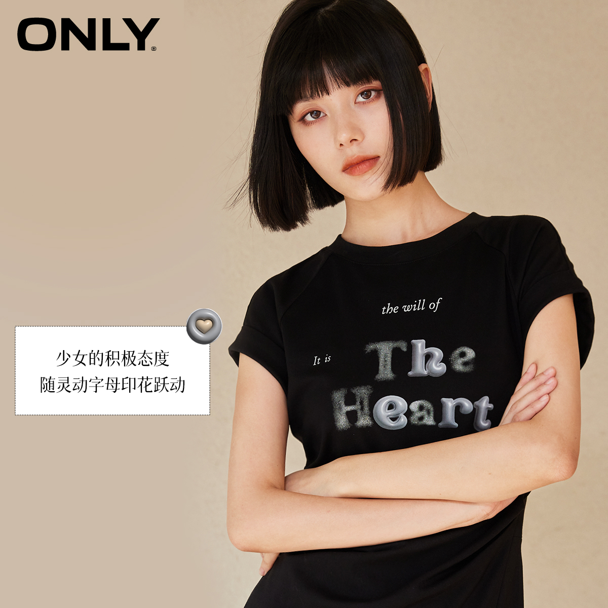 【ONLY奥莱】夏季休闲简约印花开叉中长款圆领连衣裙女|124161027