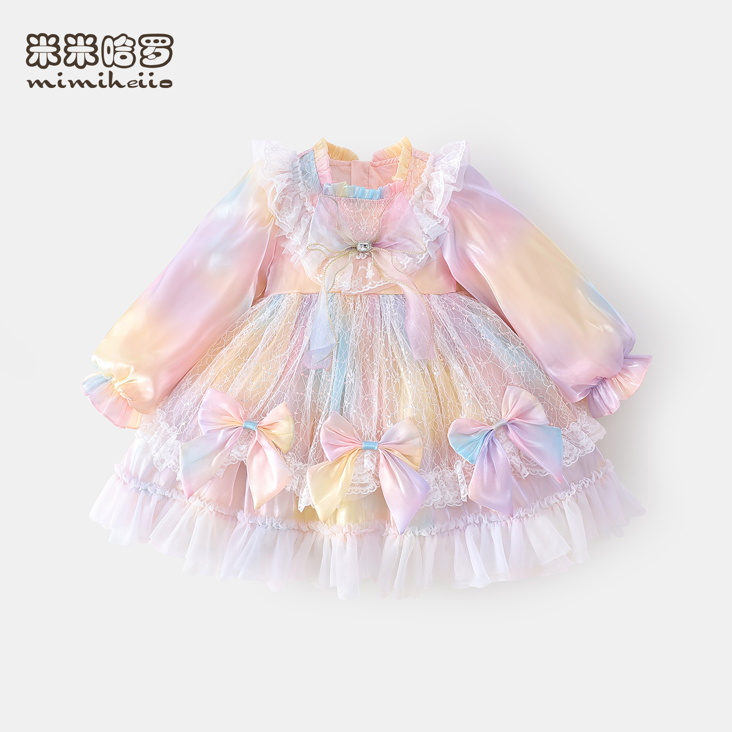 女童洛丽塔公主裙小女孩春秋2025新款儿童长袖蕾丝网纱蓬蓬连衣裙