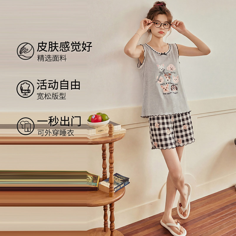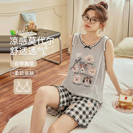 帕兰朵夏季莫代尔女款睡衣2026新款带胸垫背心短裤薄款家居服套装