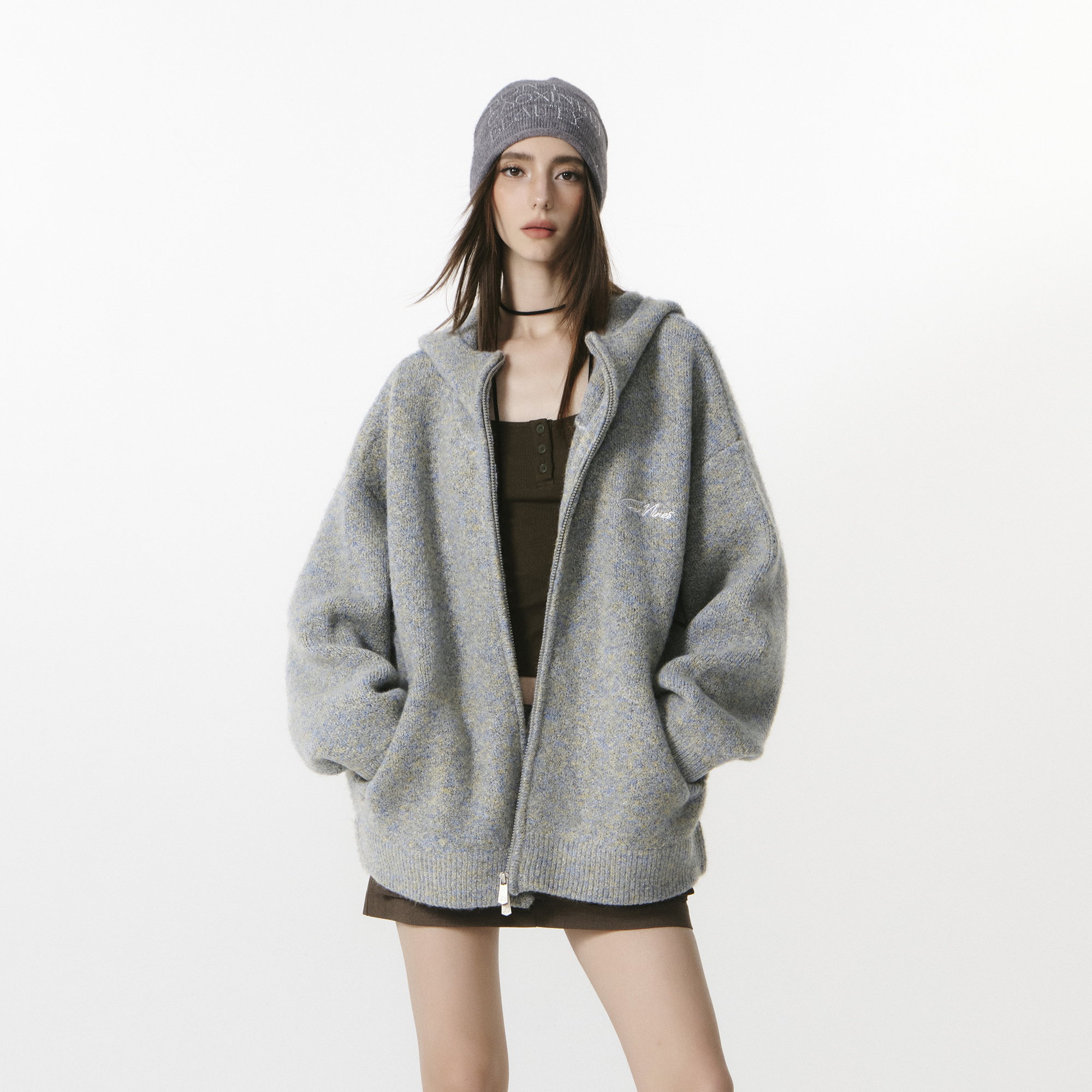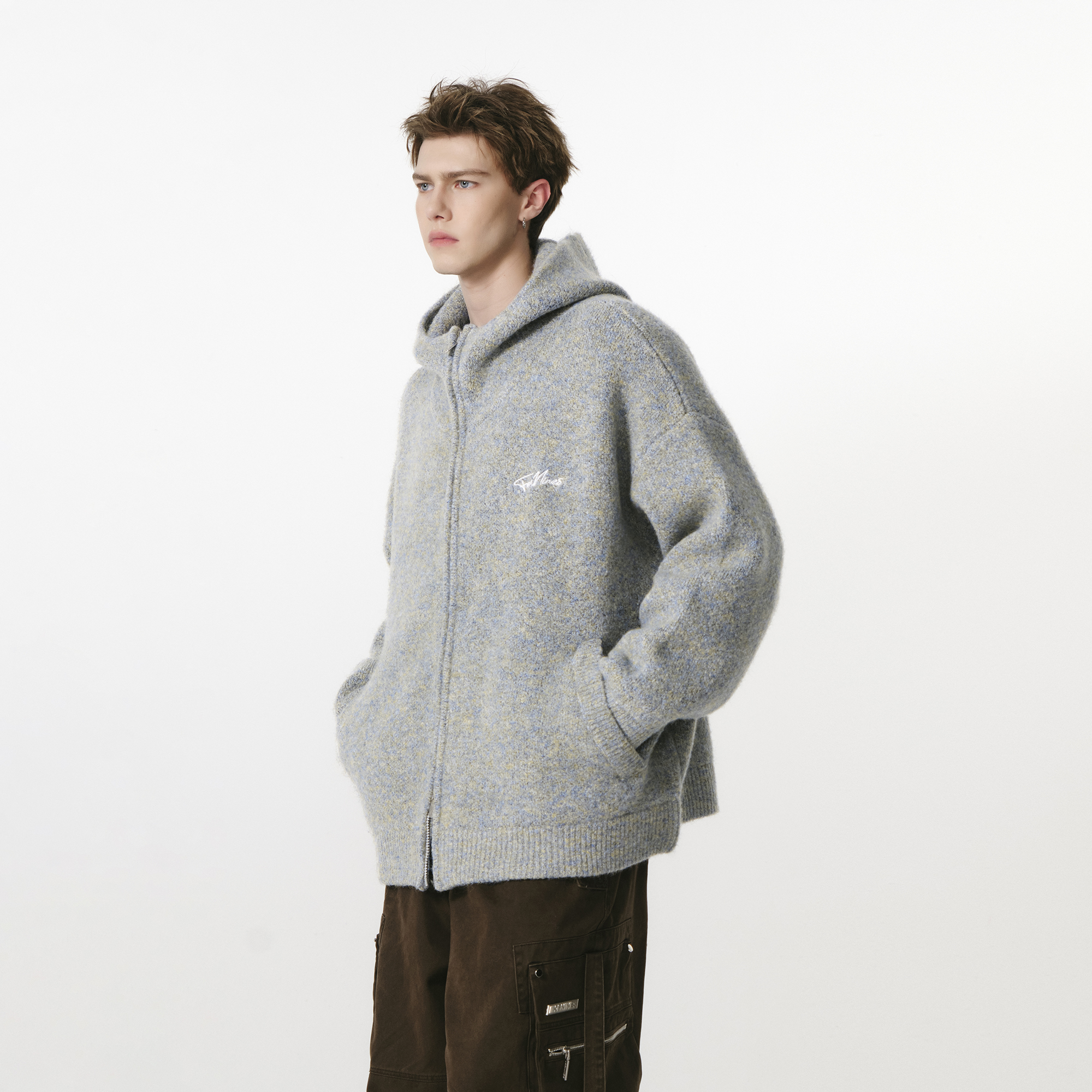 FORNINES复古拉链开衫毛衣男生秋冬款连帽加厚学院风针织衫外套女
