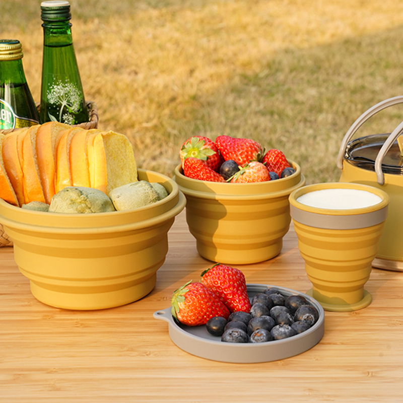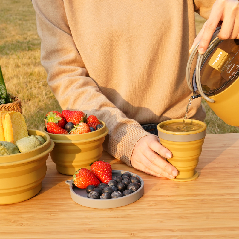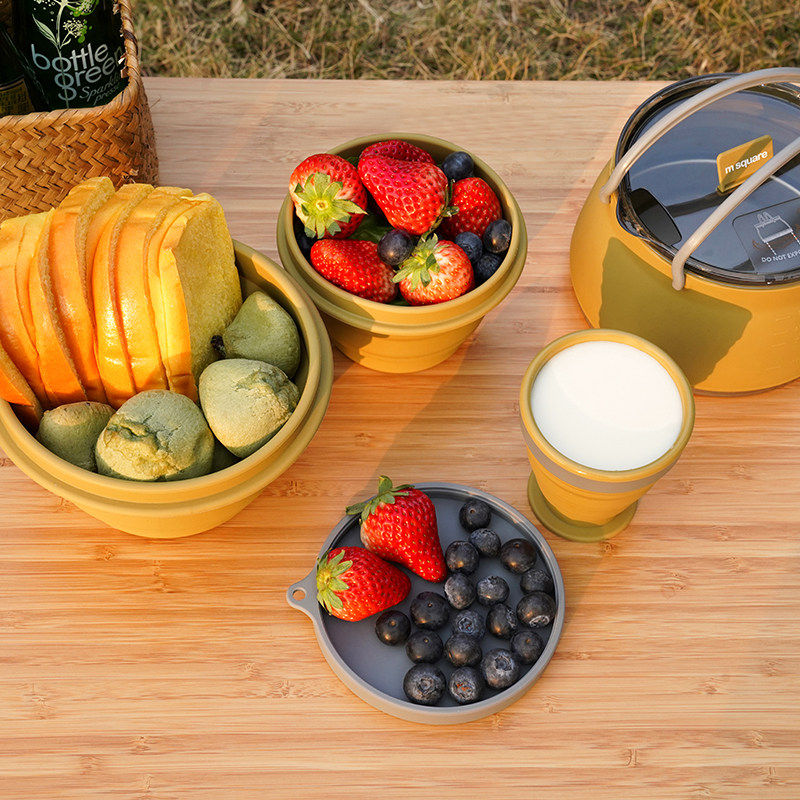 m square旅行硅胶折叠碗户外便携野餐具盒旅游可伸缩泡面碗洗漱杯