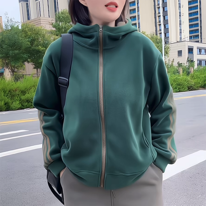 冲锋衣撞色拼接长袖连帽卫衣女秋冬显瘦休闲上衣短款韩系拉链外套