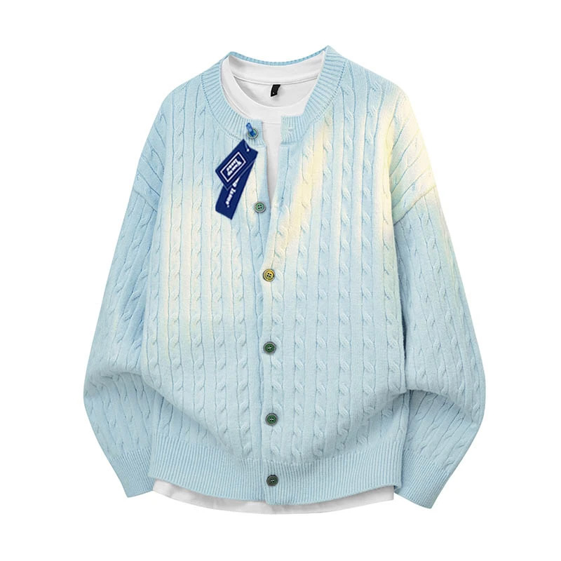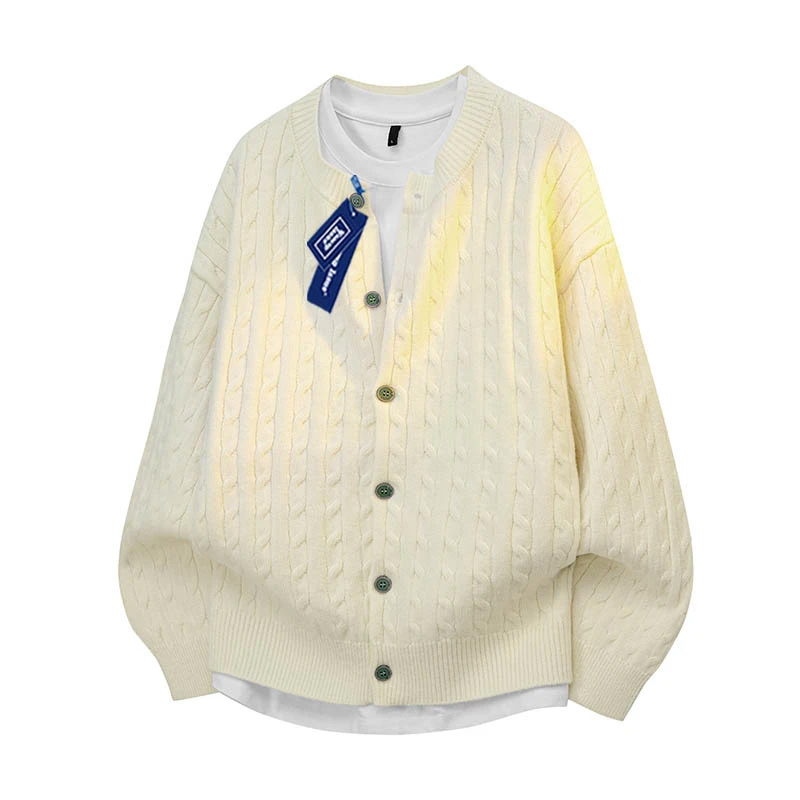 纯色cleanfit针织纽扣开衫外套男慵懒感情侣休闲秋季棒球领毛衣潮