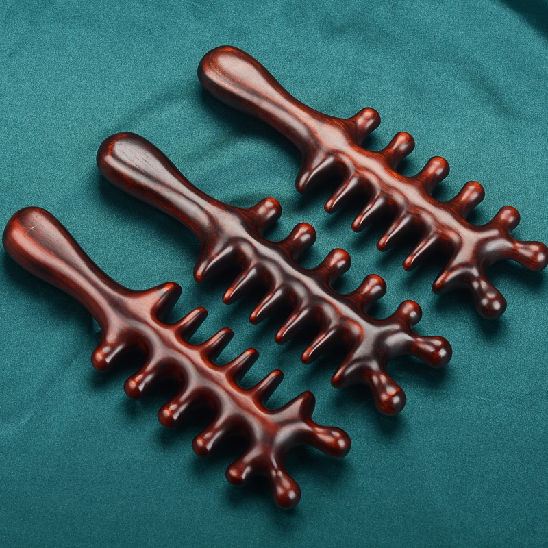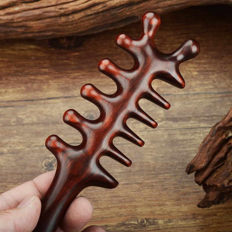天然紫檀宽齿按摩梳皮经络梳