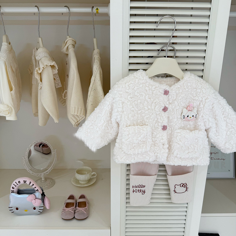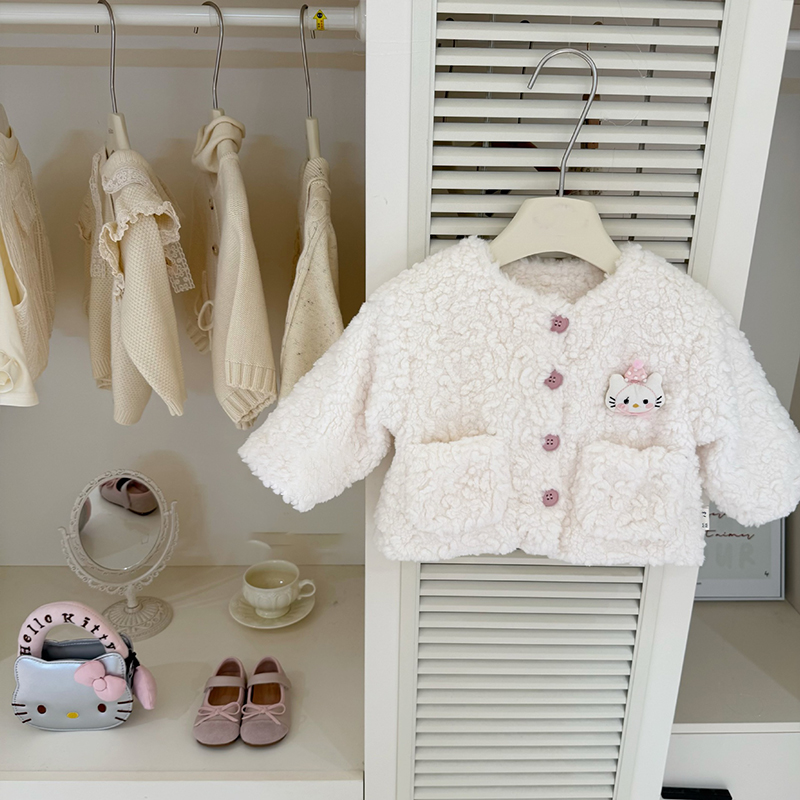 女童秋冬款毛毛衣外套2025新款女孩洋气卡通KT猫连帽加厚保暖上衣