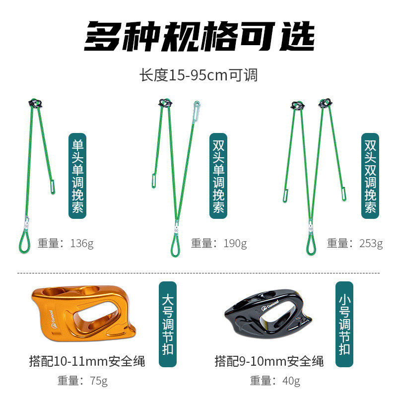 热销坎乐户外srt固/双固定点可调节牛尾挽索单速降探洞溯溪保护双