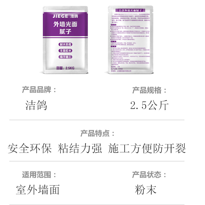 洁鸽外墙光面腻子粉袋装批墙腻子膏家用修补刮墙大白防水耐候小包
