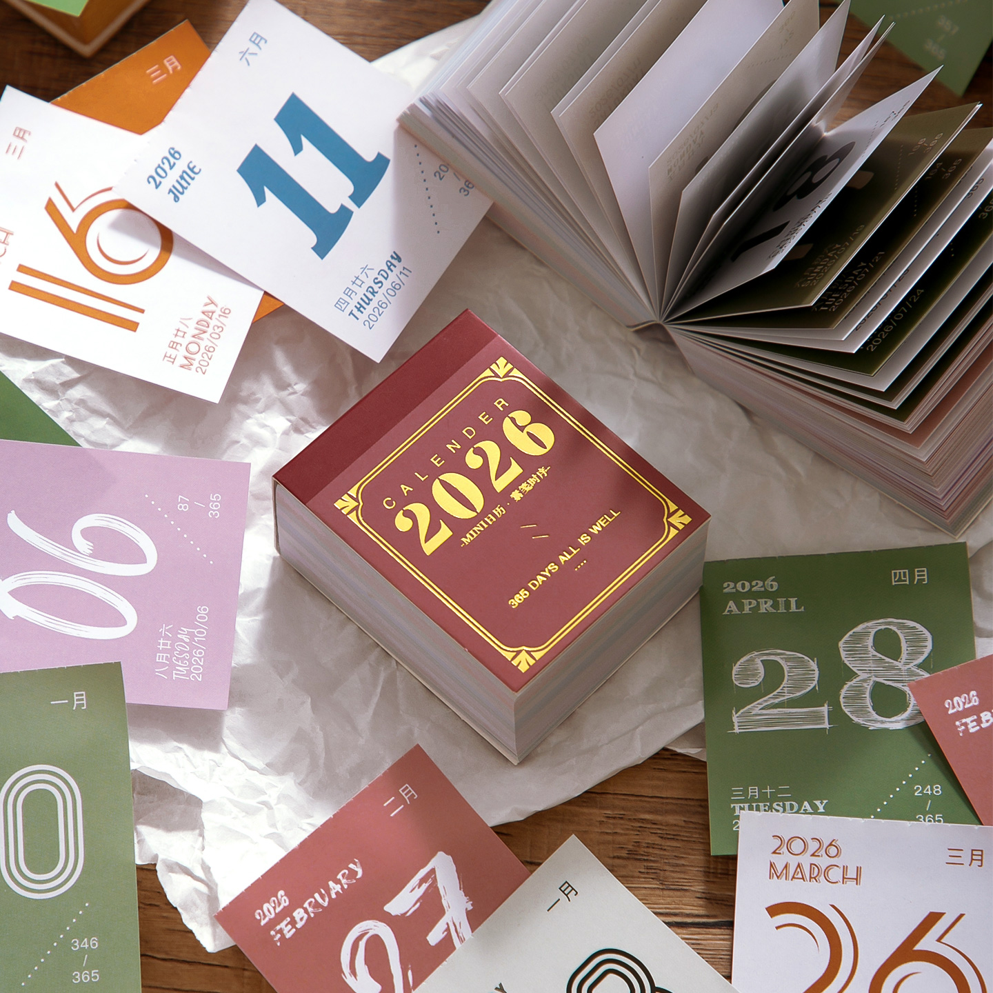 素笺时序日历2026年新款简约MINI迷你台历365天高考倒计时手撕打卡计划本记事本桌面摆件生日礼物手账素材diy
