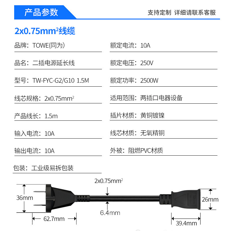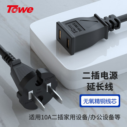TOWE同为二插电源线两孔延长线风扇电动车电视机电风扇充电延长线