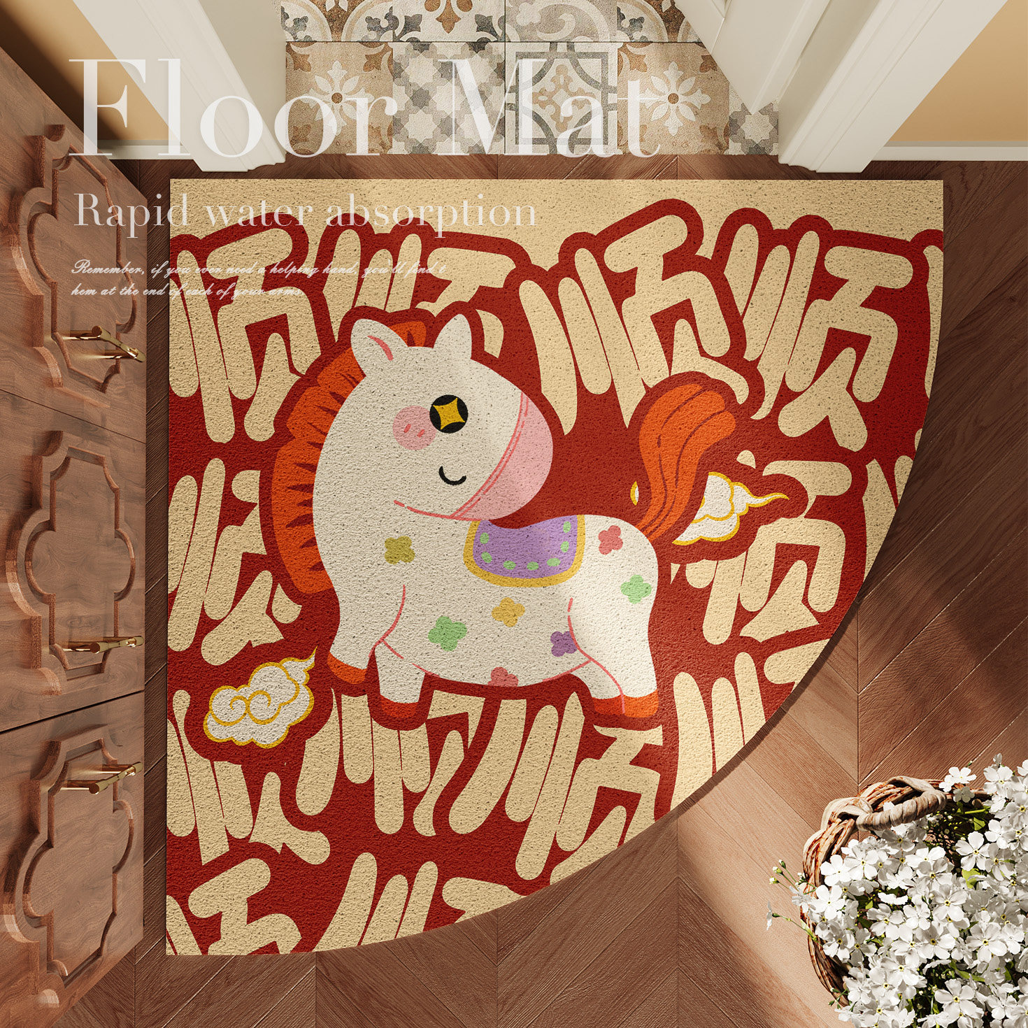 可爱小马扇形入户门地垫进门门口门垫脚垫进户门入门大门地毯创意