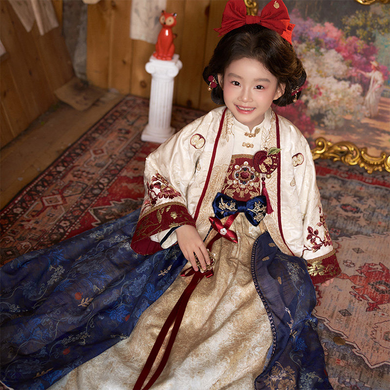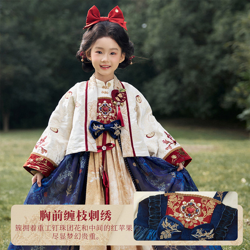 十三余童装【迪士尼白雪公主红苹果之宴】新款冬季套装国风连衣裙