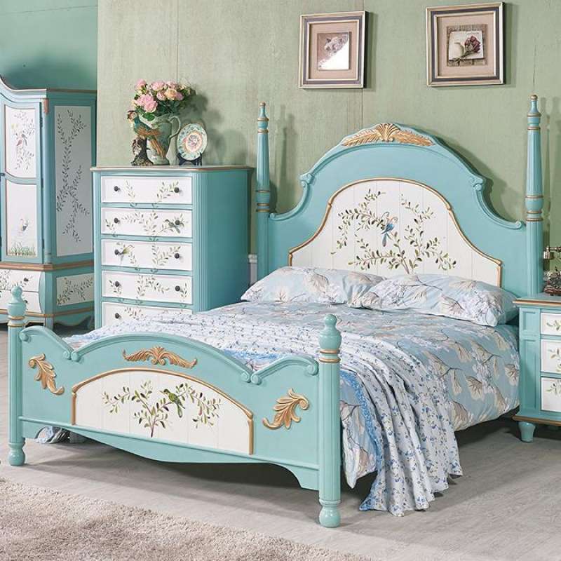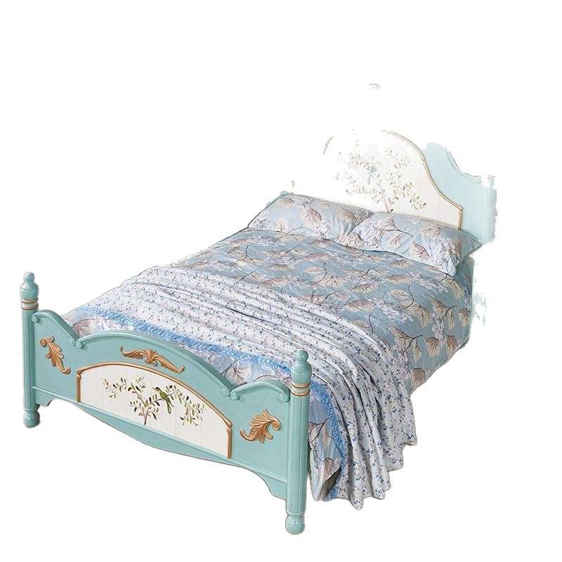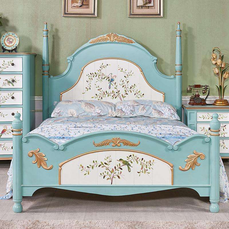 美式乡村田园风手彩绘.米双人床实木复古.米主卧地中海公主床