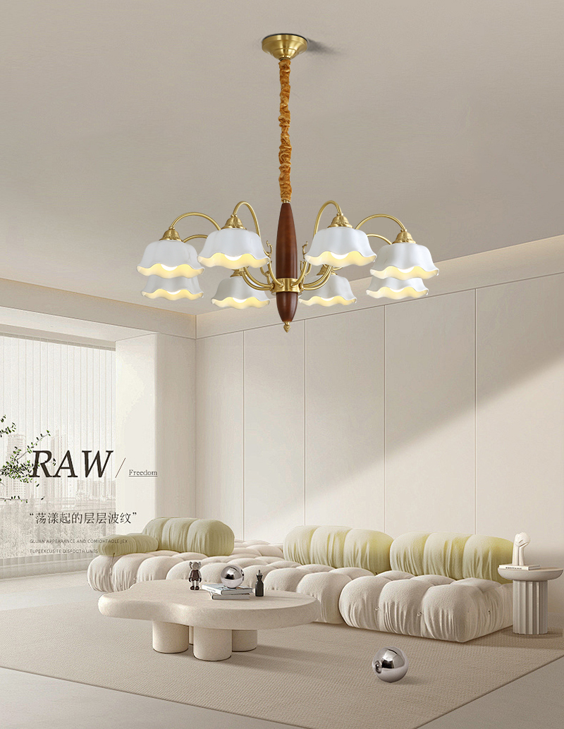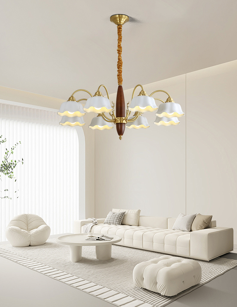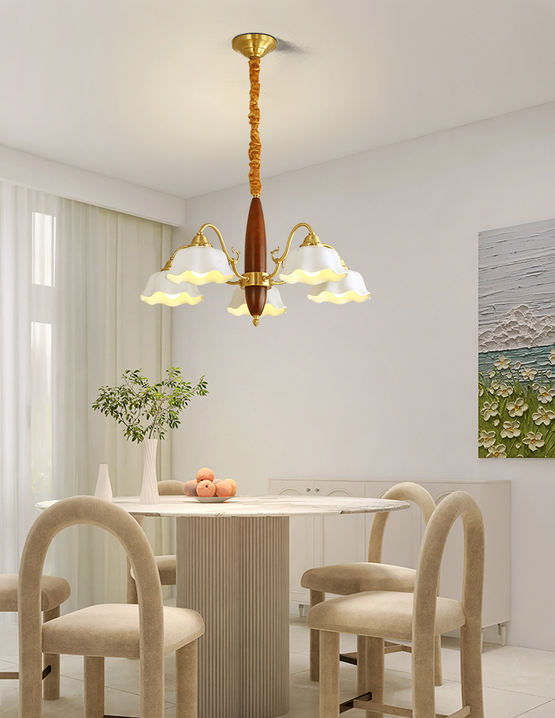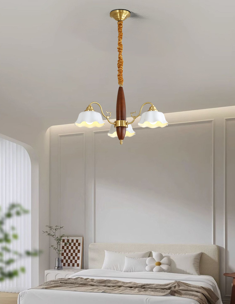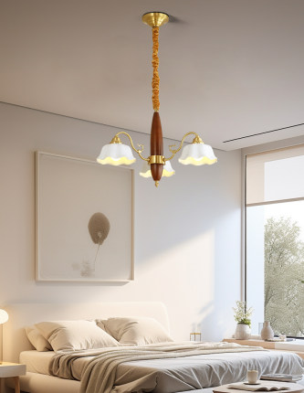 格兰曼复古卧室吊灯全铜实木餐厅书房客厅灯具法式田园风铃兰花