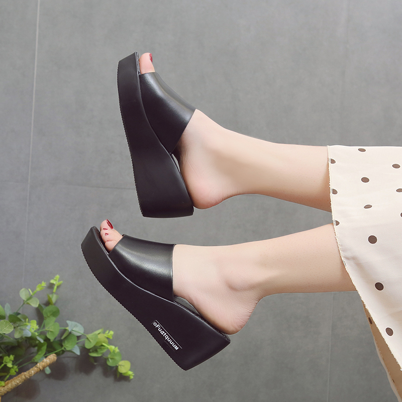 2023夏季新款厚底高跟坡跟一字拖外穿女凉拖防水台女拖鞋百搭女鞋