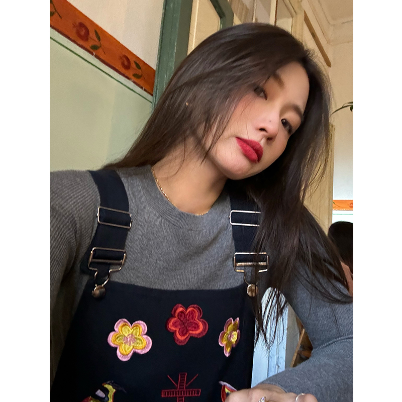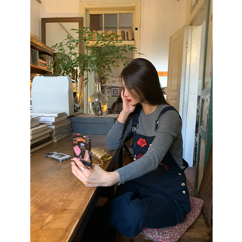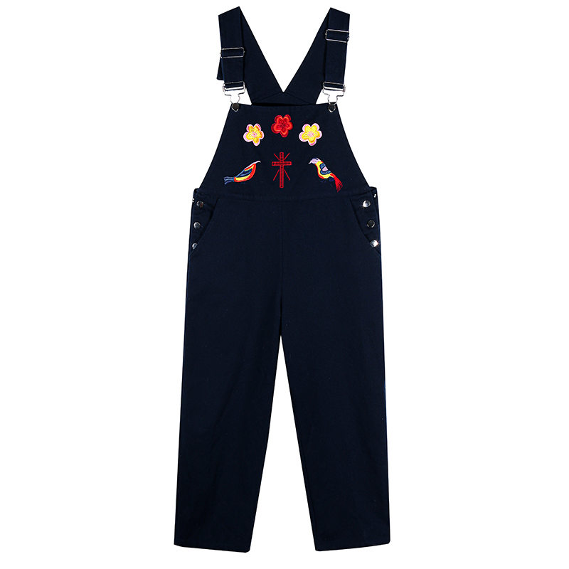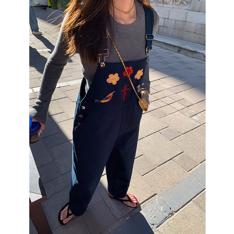 落落狷介 连体裤2025新款女春秋牛仔刺绣背带裤女小个子宽松裤子