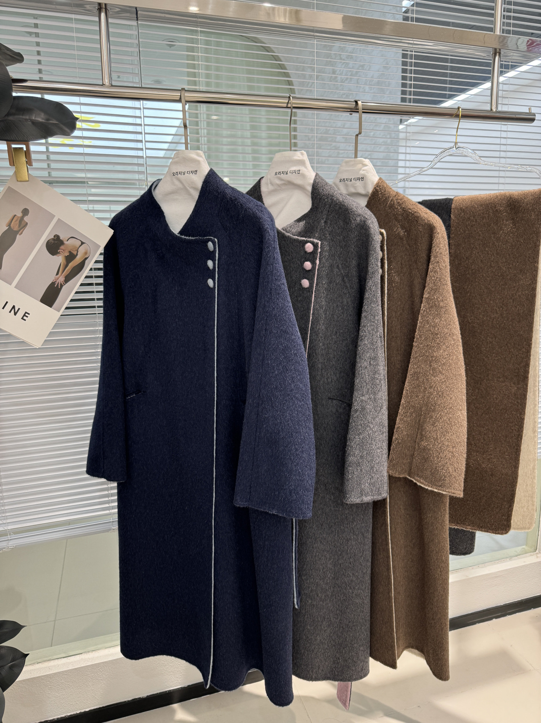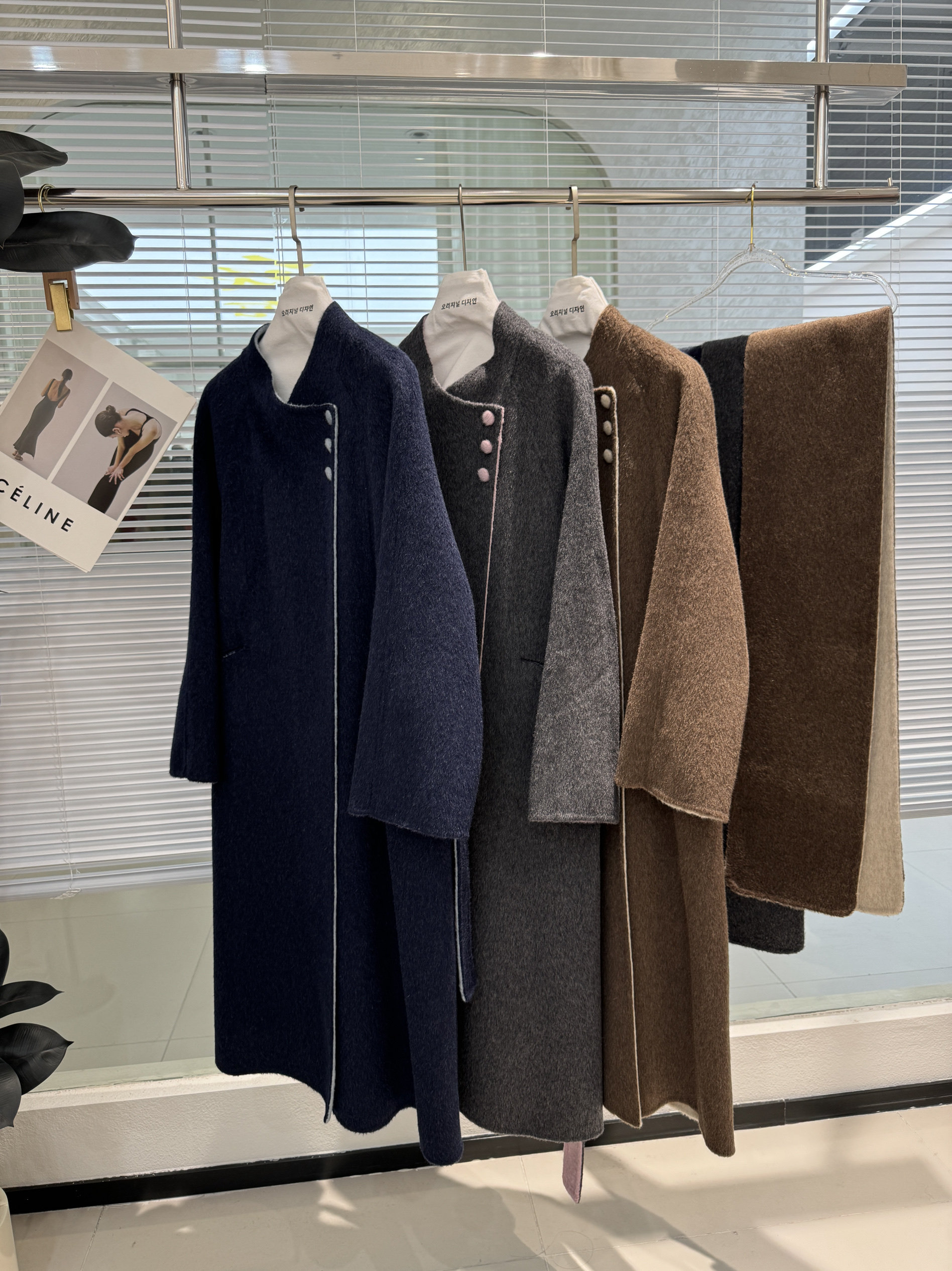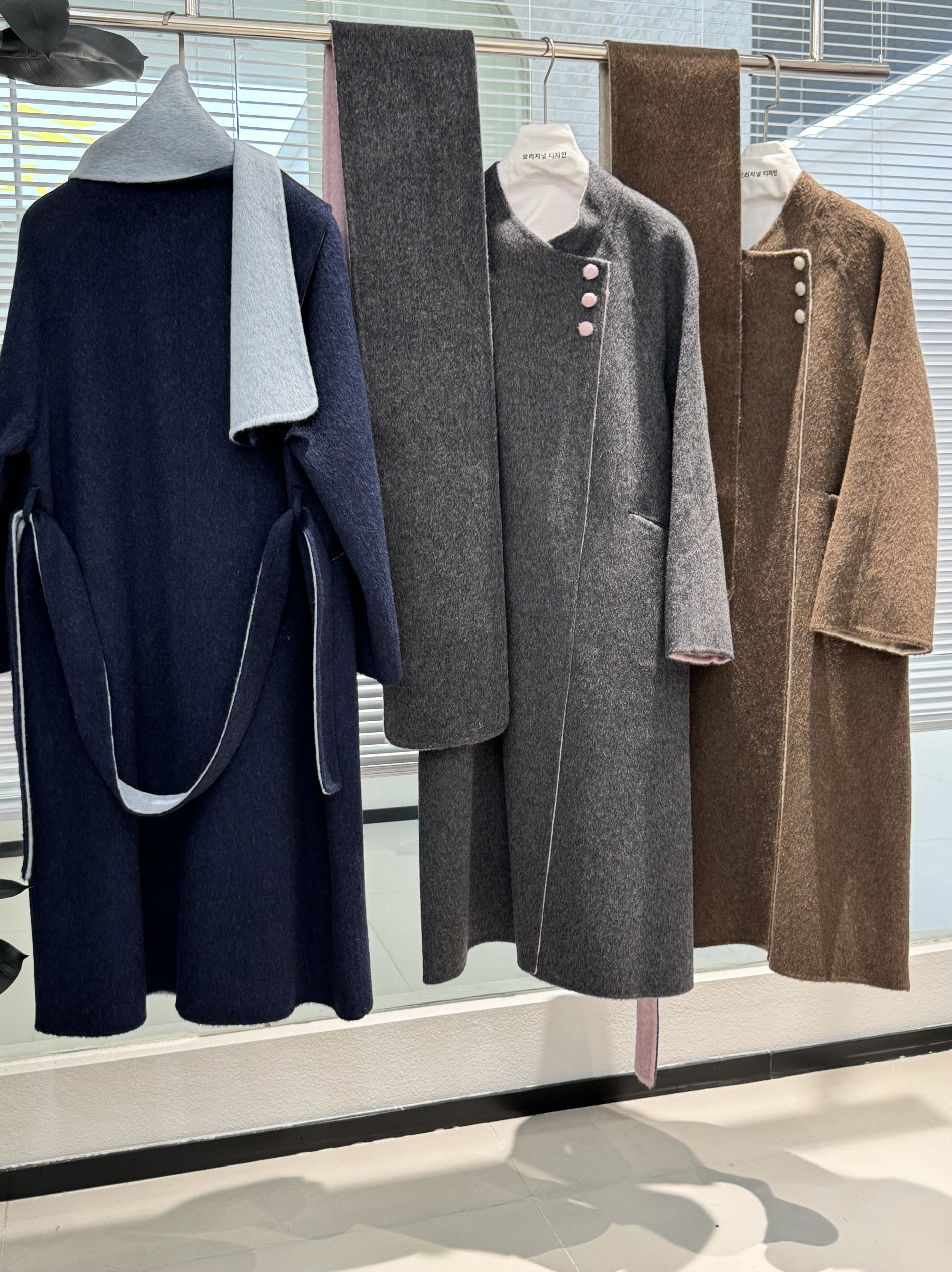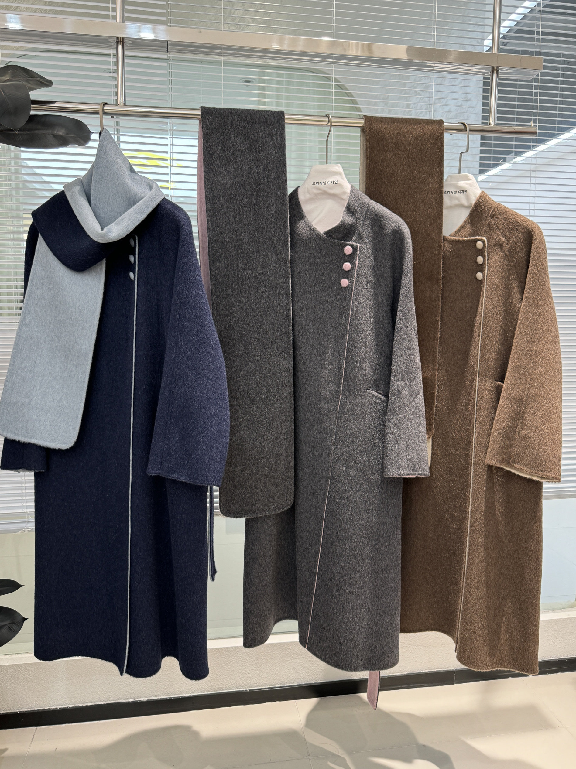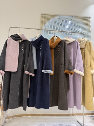 新款高端三粒扣简约大气围巾款AB面拼色双面羊绒大衣长款羊毛外套