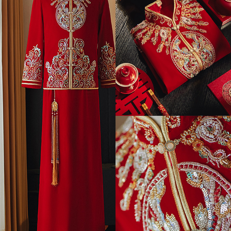 出租男士2025秀禾服唐装中式大码秋冬新郎结婚礼服龙凤褂男装婚礼