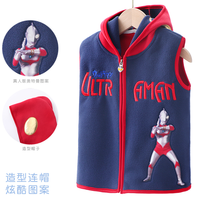 奥特曼男童马甲春秋外穿儿童背心坎肩秋冬保暖男孩宝宝摇粒绒马夹