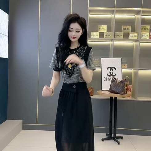 欧货气质时尚套装女2025夏季洋气设计感显瘦短袖连衣裙围裙两件套