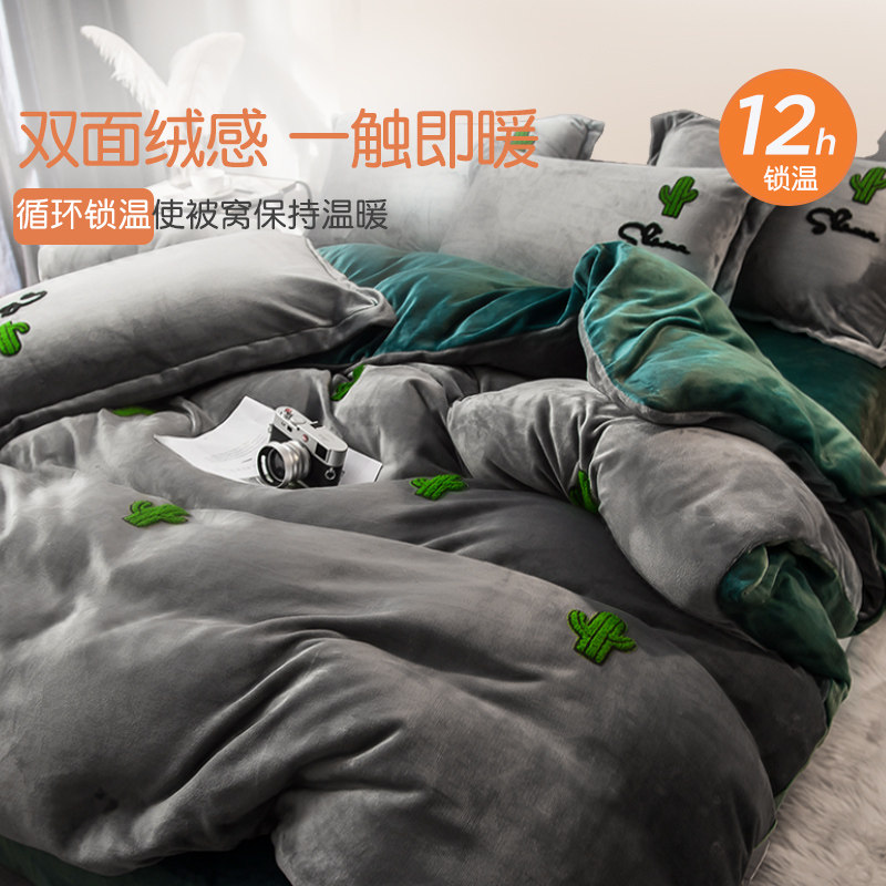 牛奶绒保暖床单被套四件套床笠