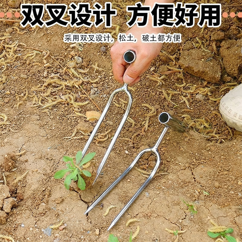 松土神器手持两齿叉花盆翻土二齿叉子种花种菜园艺专用工具开荒用