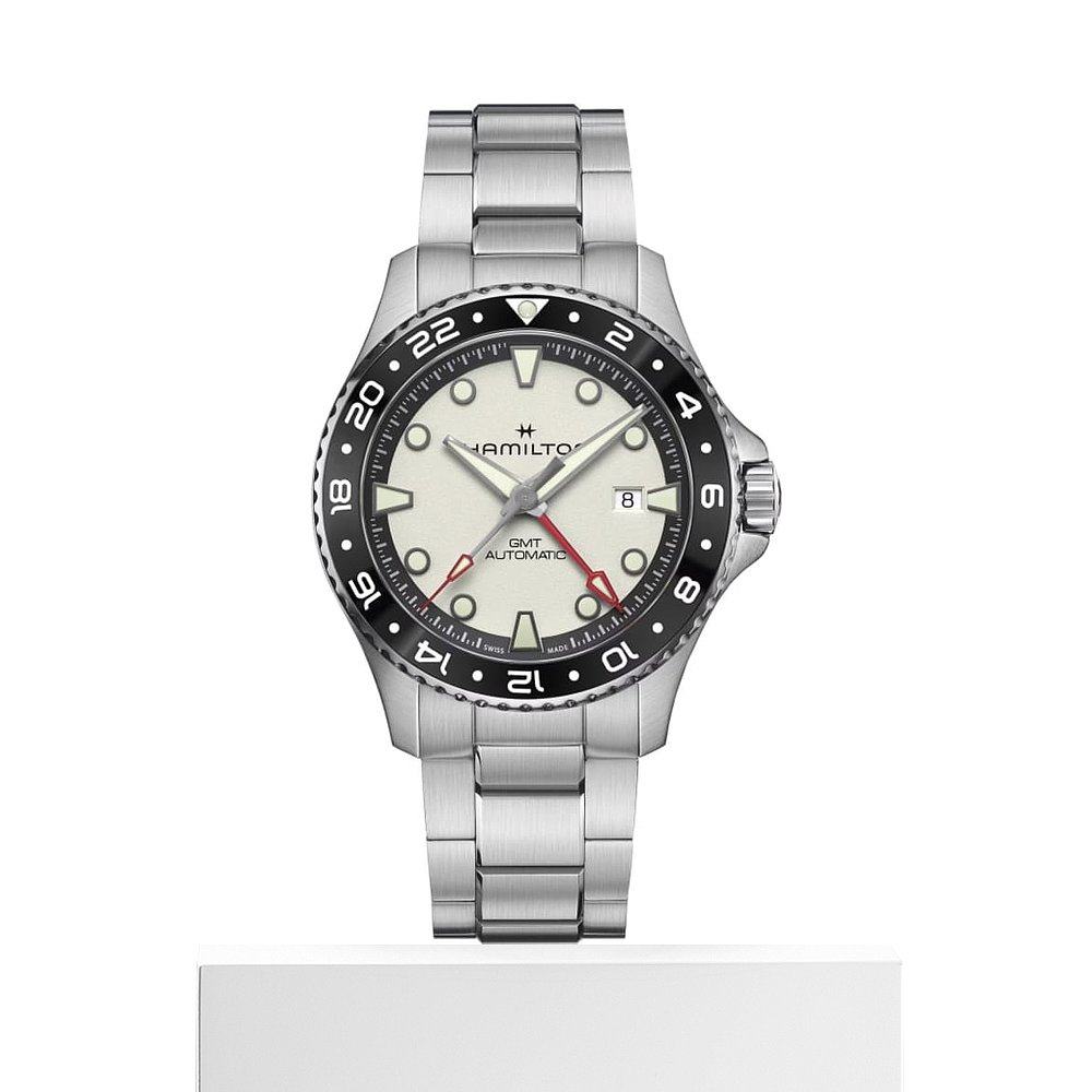 自营Hamilton Khaki Navy Scuba Auto GMT Silver Dial Stainless
