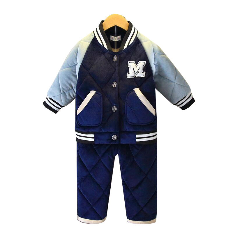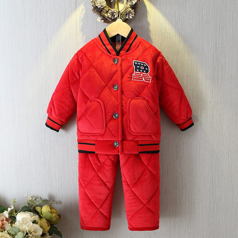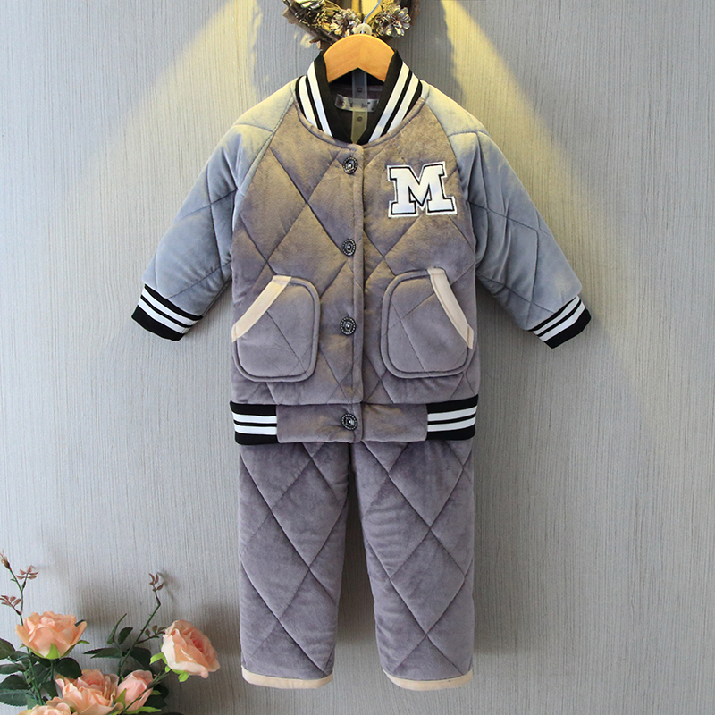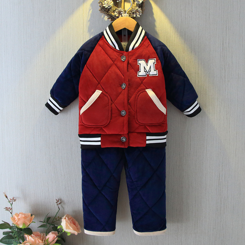 冬季加厚款男童夹棉珊瑚绒棒球服