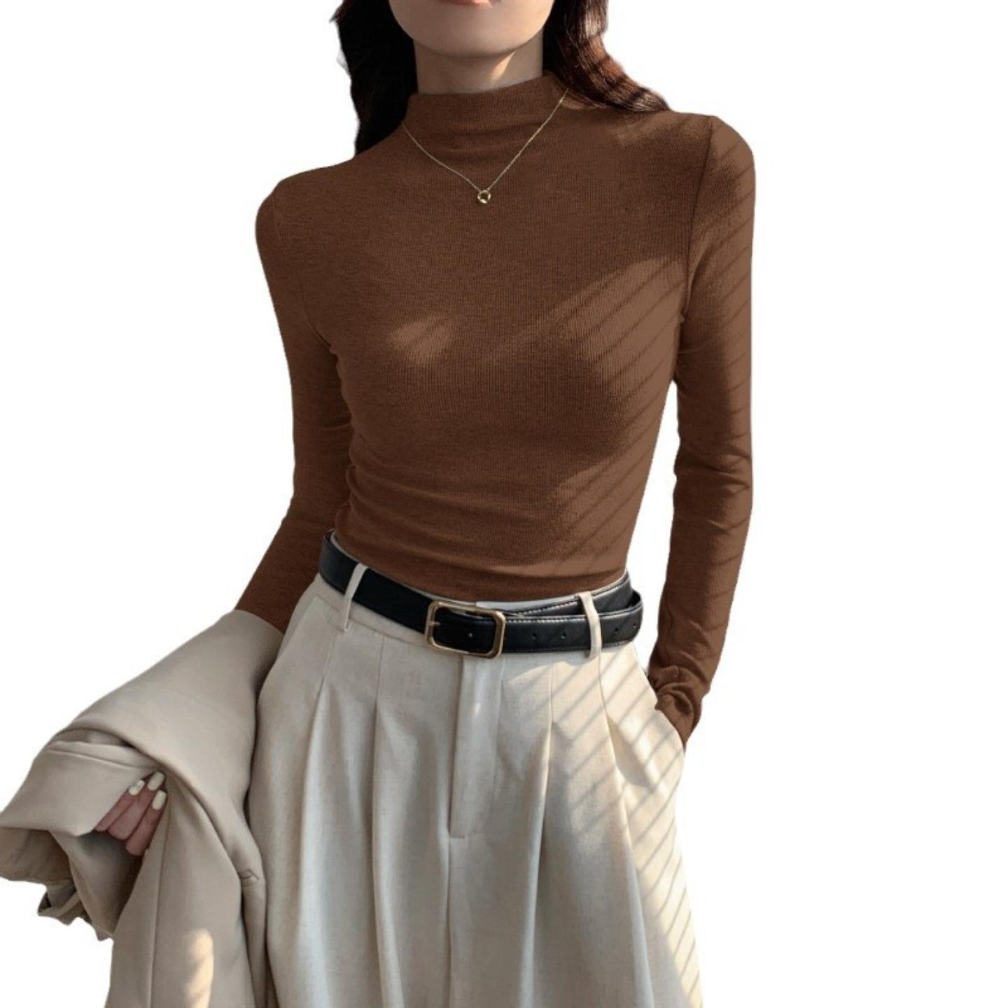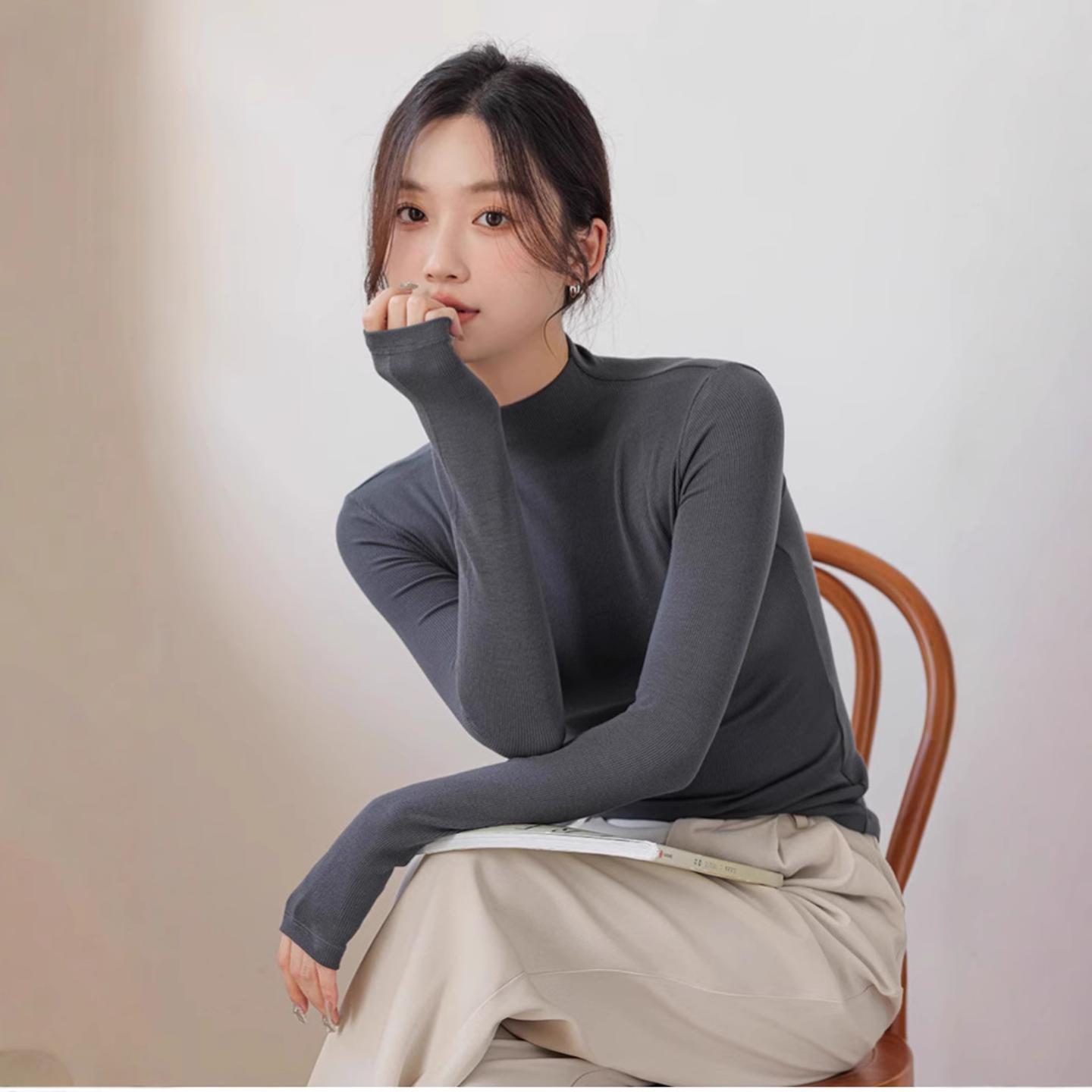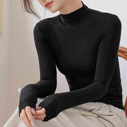 黑色半高领打底衫女2025新款春秋冬内搭长袖中领修身上衣
