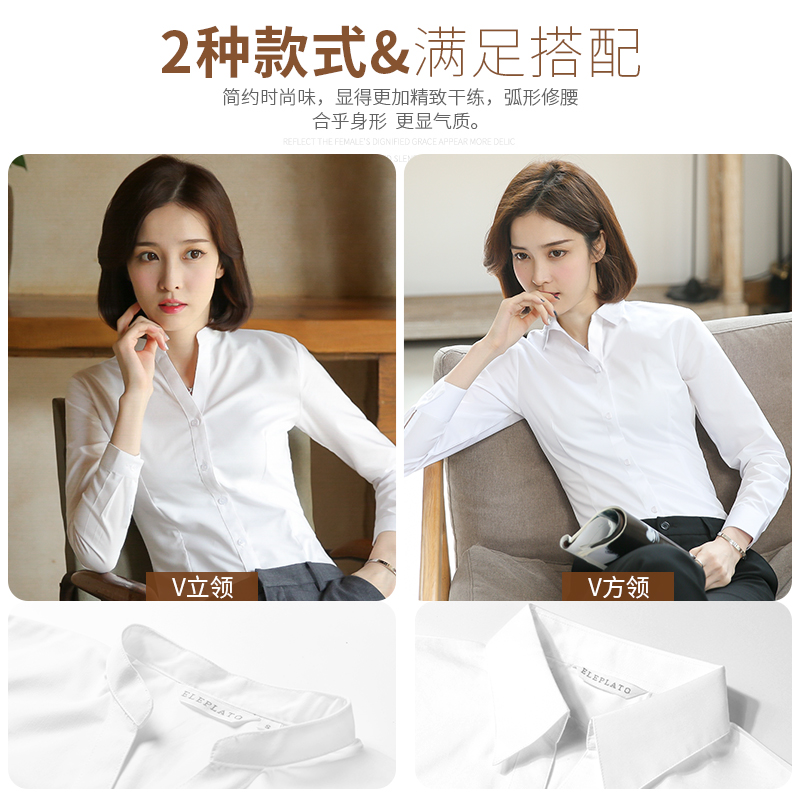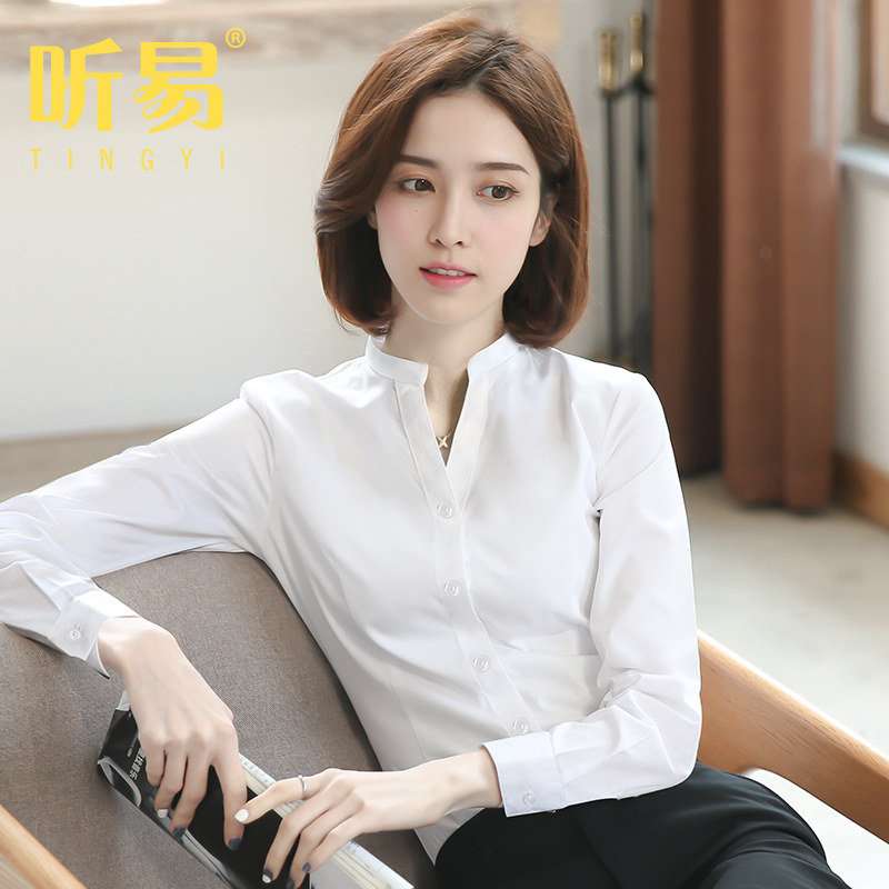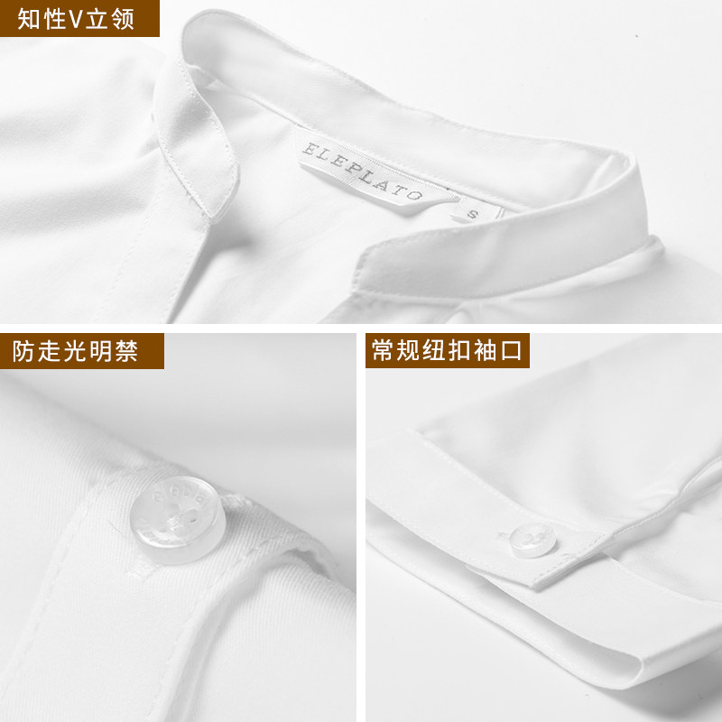 立领白色衬衫女长袖秋冬新款职业工作服正装收腰工装上衣V领衬衣