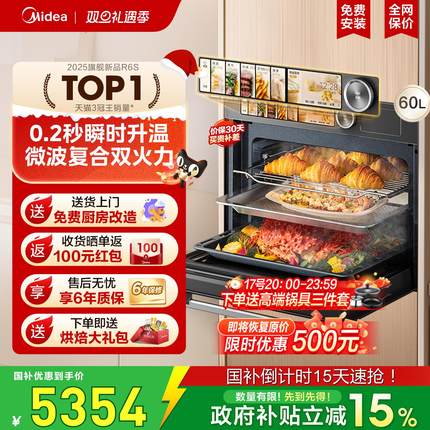 【政府补贴】美的知味感R6S微蒸烤一体纯平全嵌电蒸烤箱微波炉