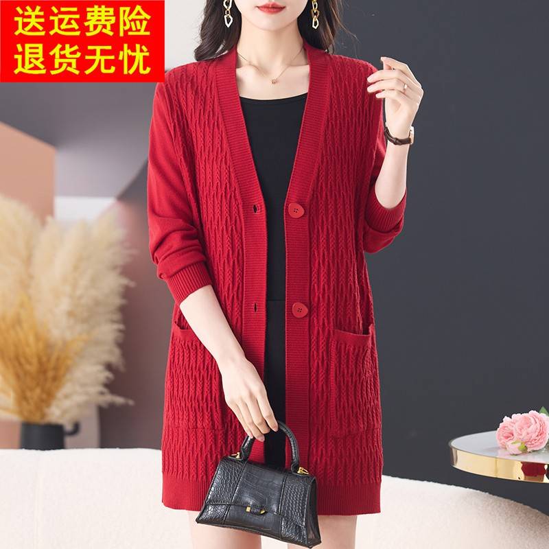 针织开衫外套女士毛衣春秋季新款妈妈中长款宽松遮屁股显瘦上衣