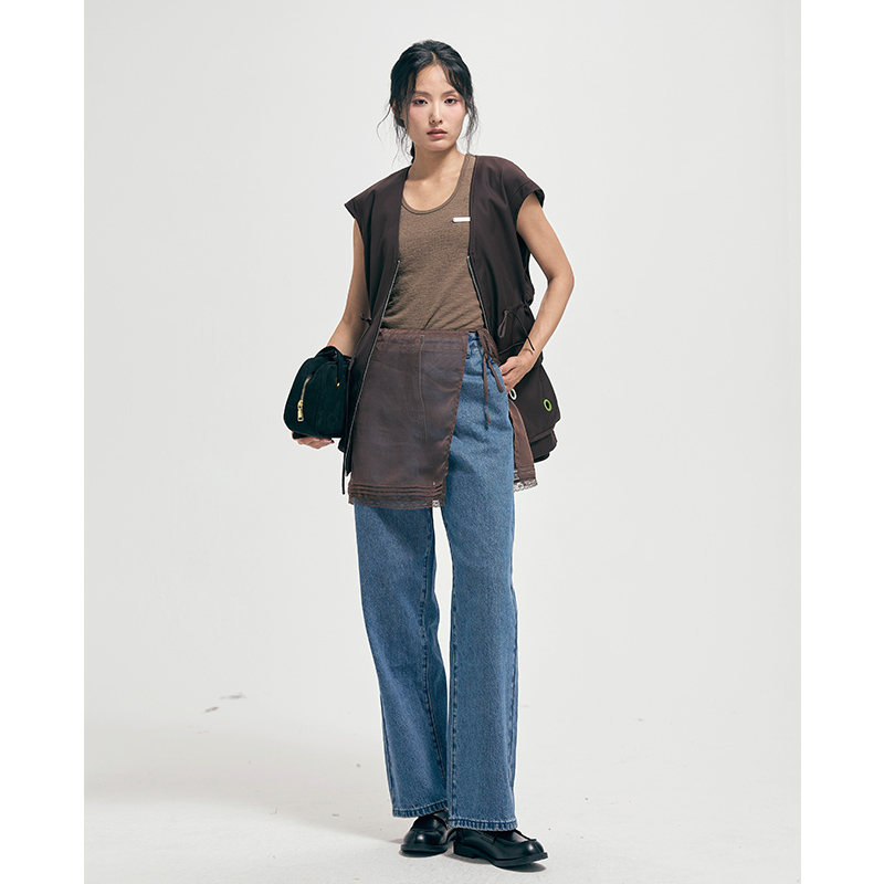 HOWL香港设计师品牌新款时髦设计感叠穿蕾丝拼接半裙女