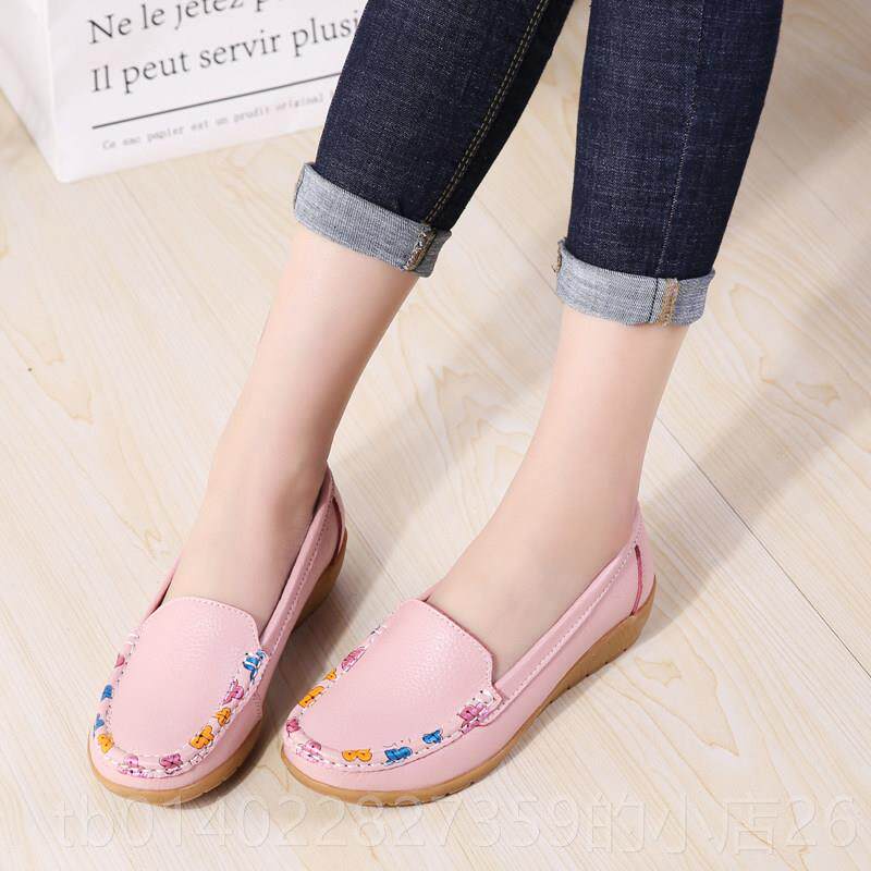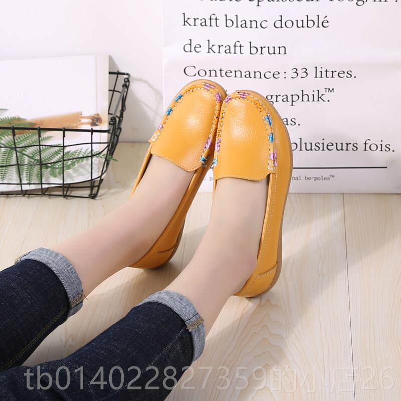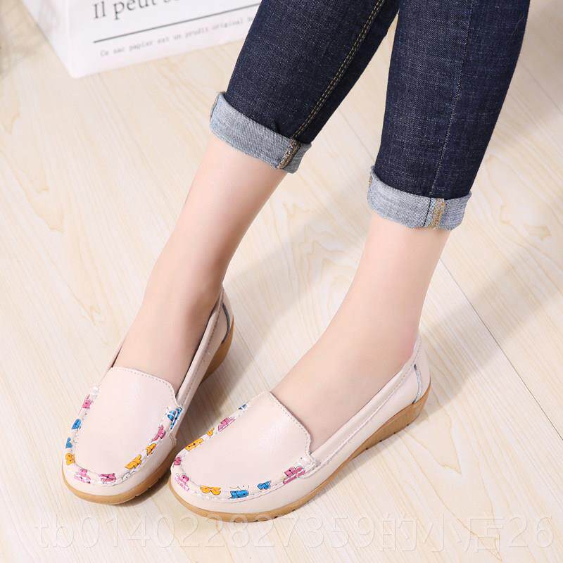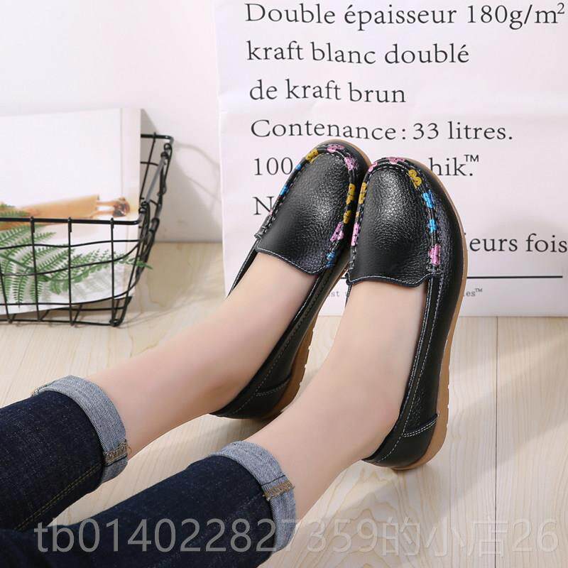 正品年季新款舒适真皮软底女春连帽鞋,坡跟平中妈妈休底闲小皮鞋